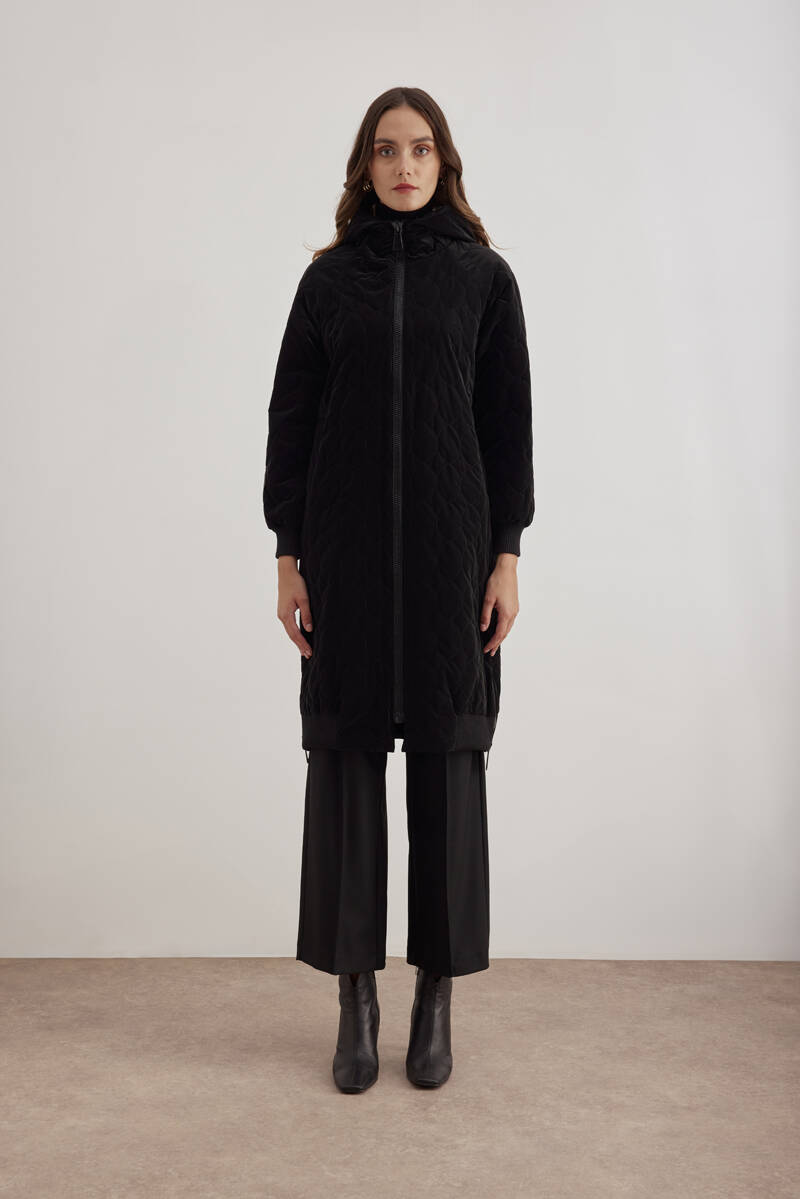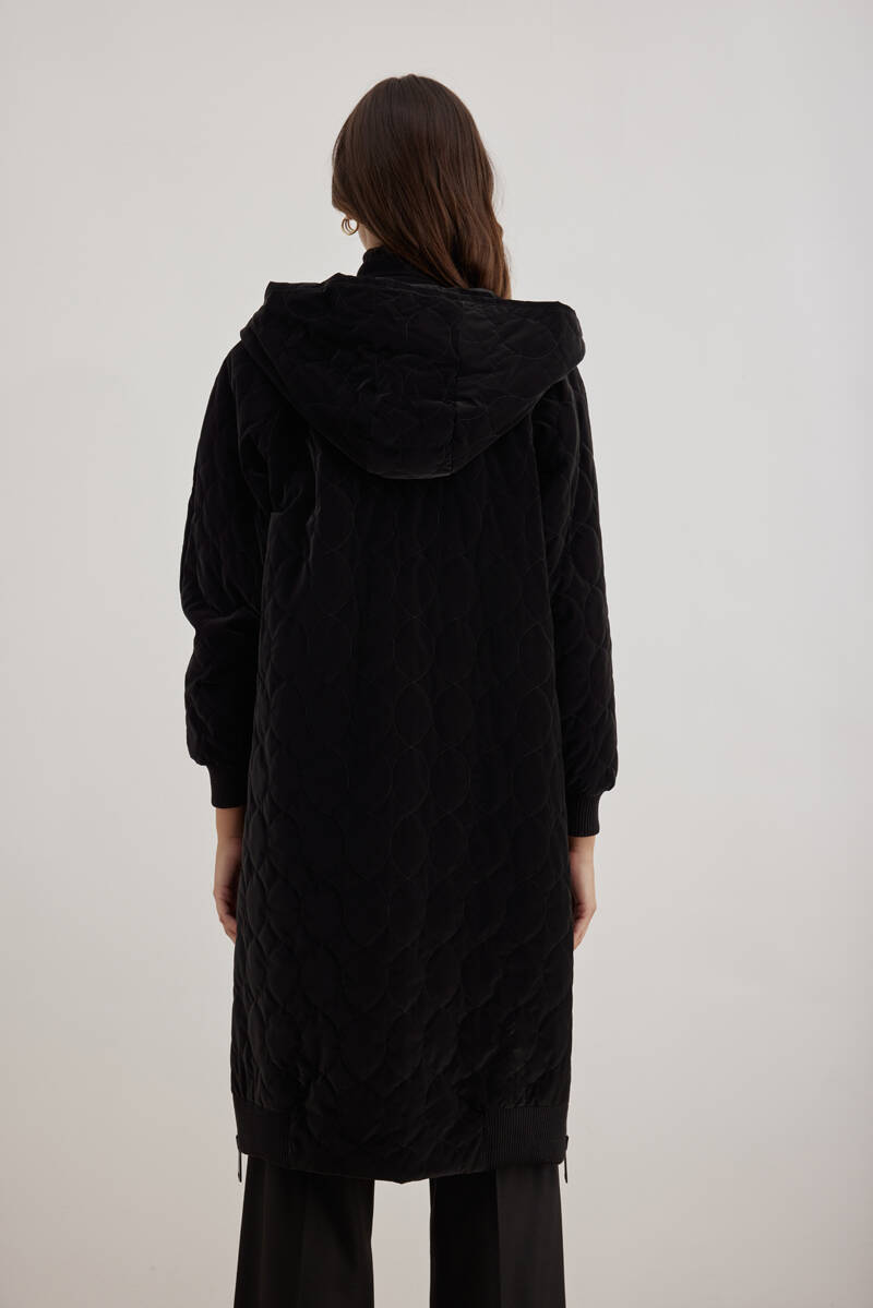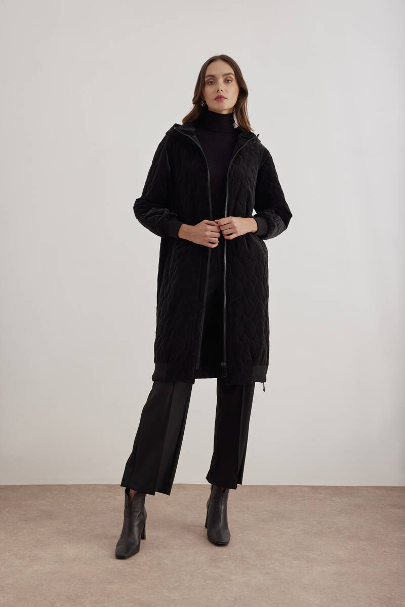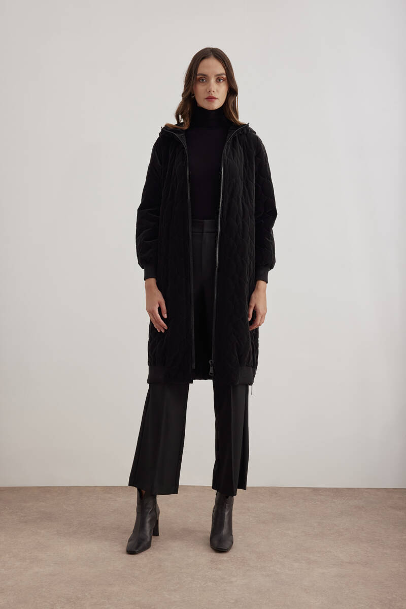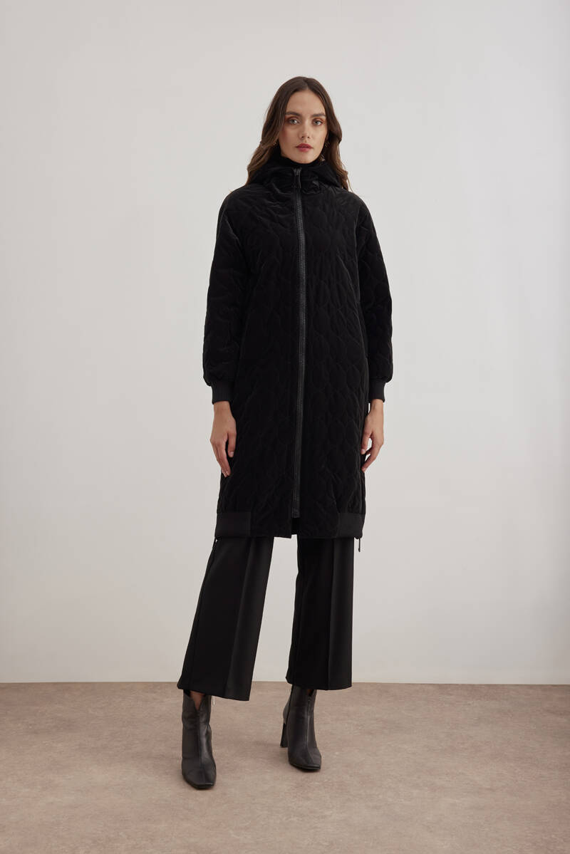 Siyah 10576111 Kapüşonlu Astarlı Mont
