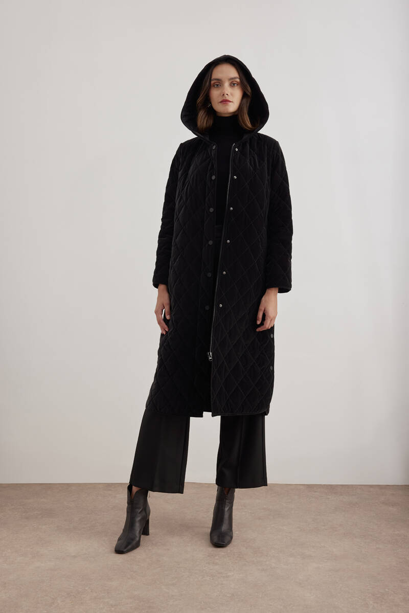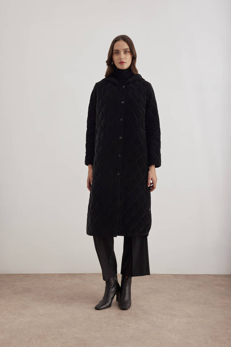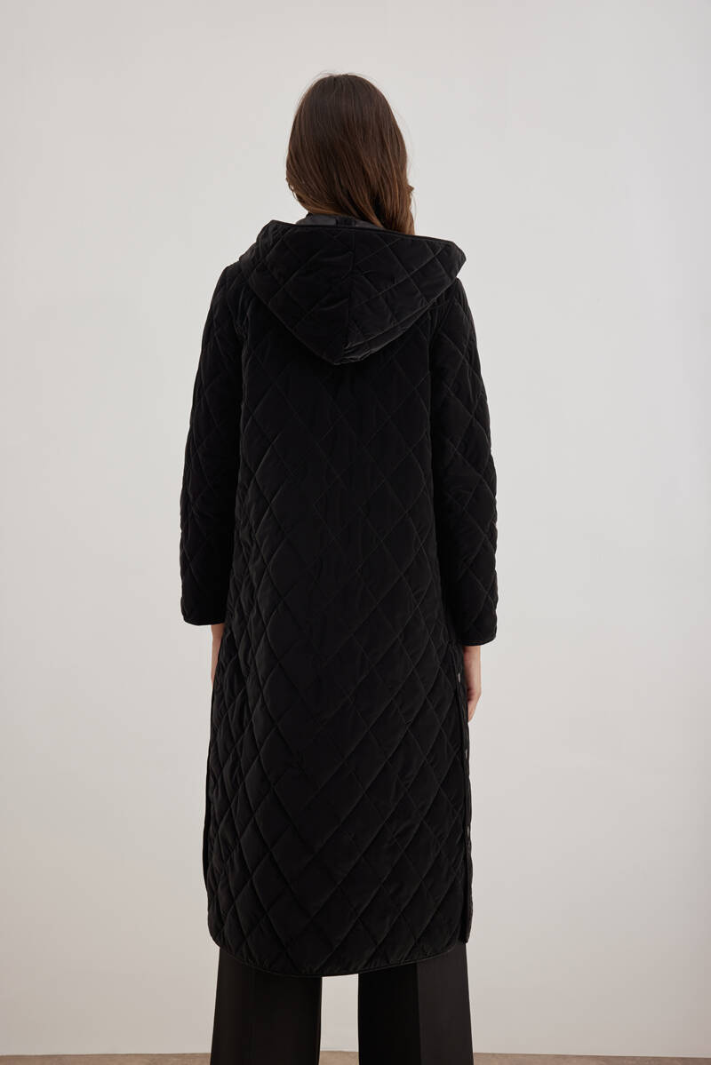 Siyah 5829111 Yaka Detaylı Kapitone Kısa Mont