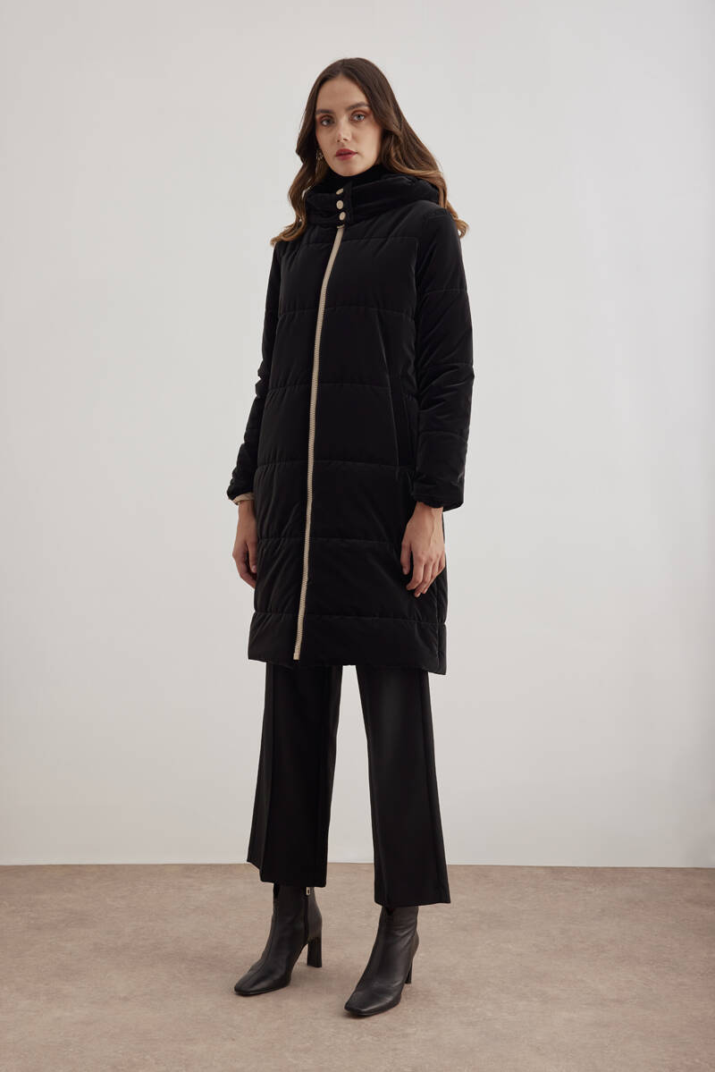 Siyah 10576111 Kapüşonlu Astarlı Mont