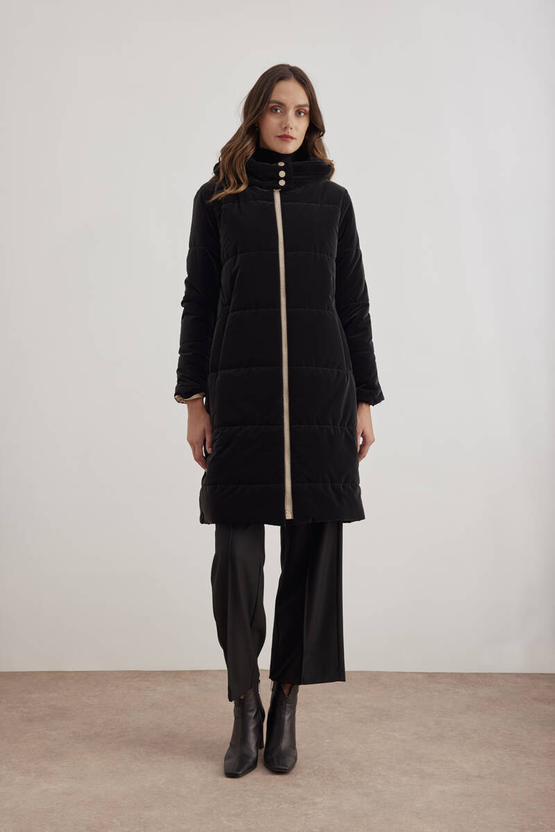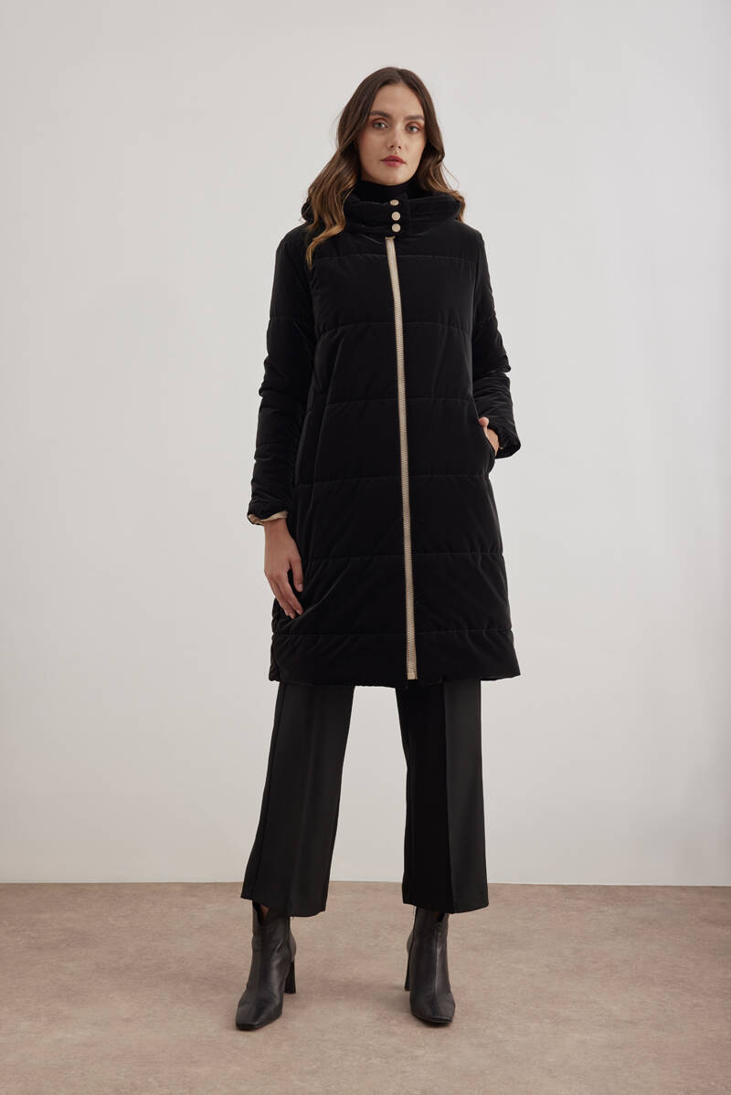 Siyah 5829111 Yaka Detaylı Kapitone Kısa Mont