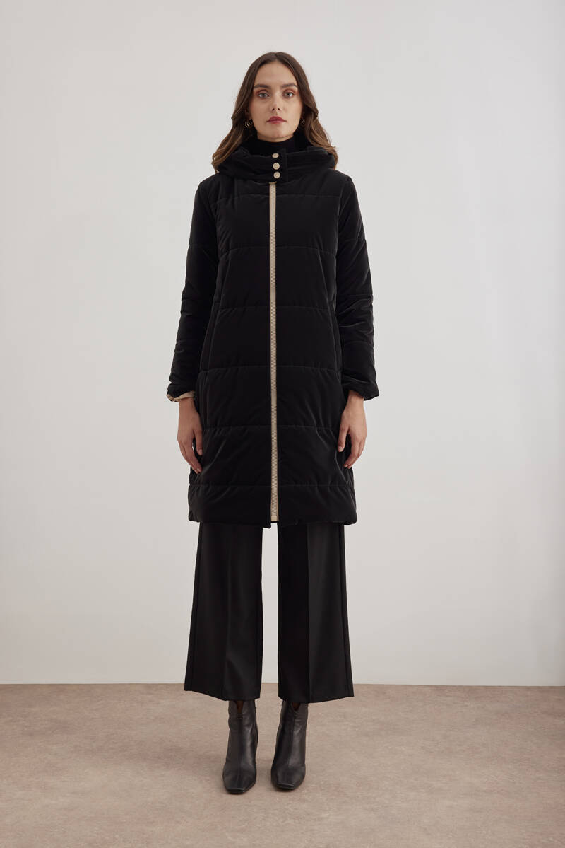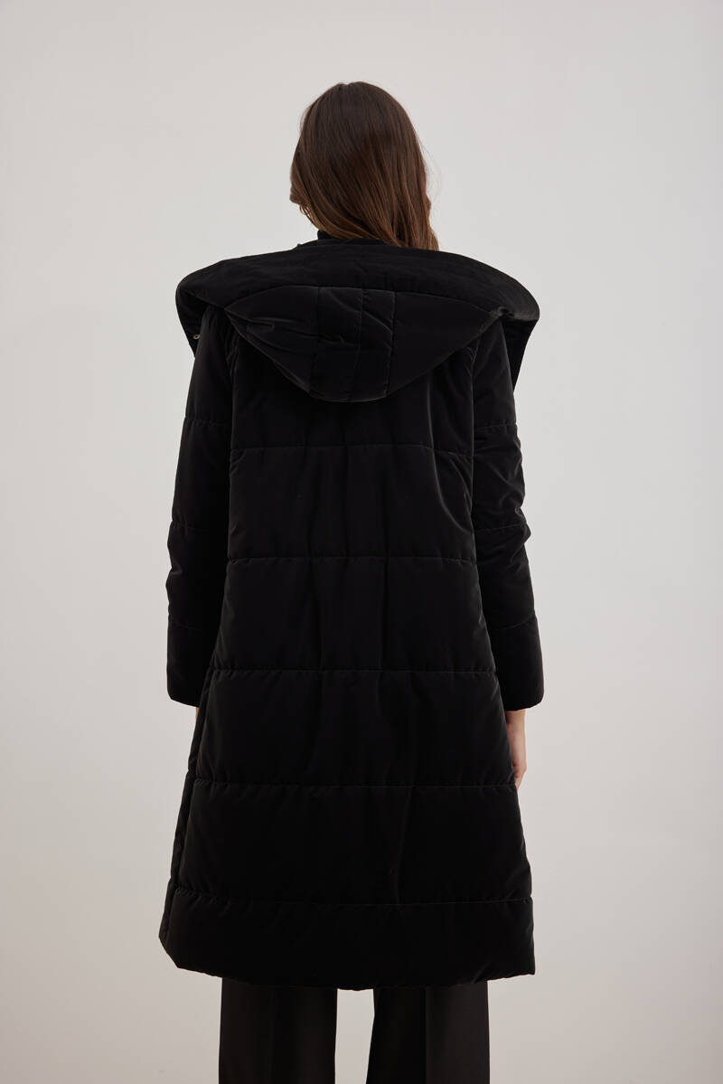Siyah 10576111 Kapüşonlu Astarlı Mont