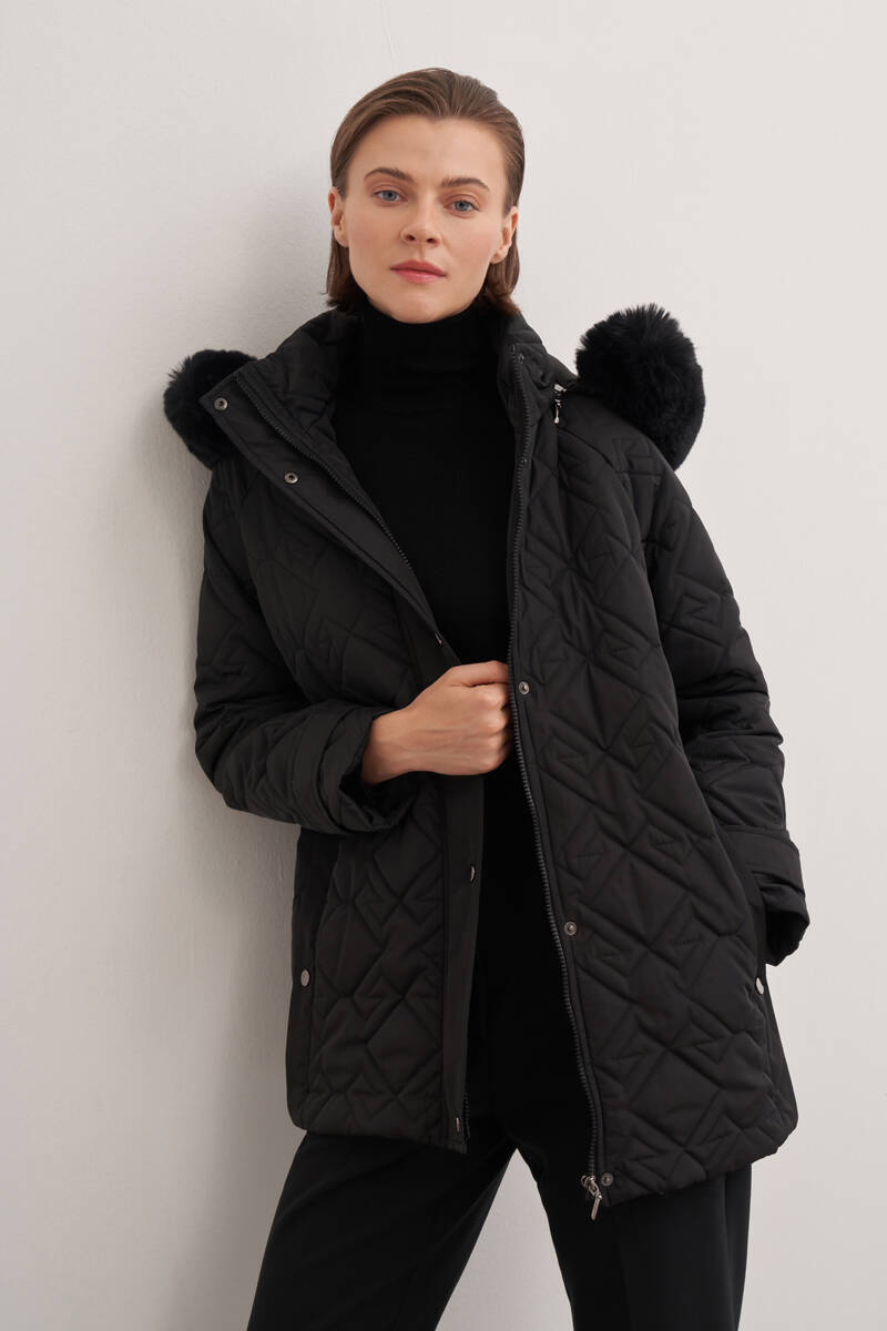 Siyah 10576111 Kapüşonlu Astarlı Mont