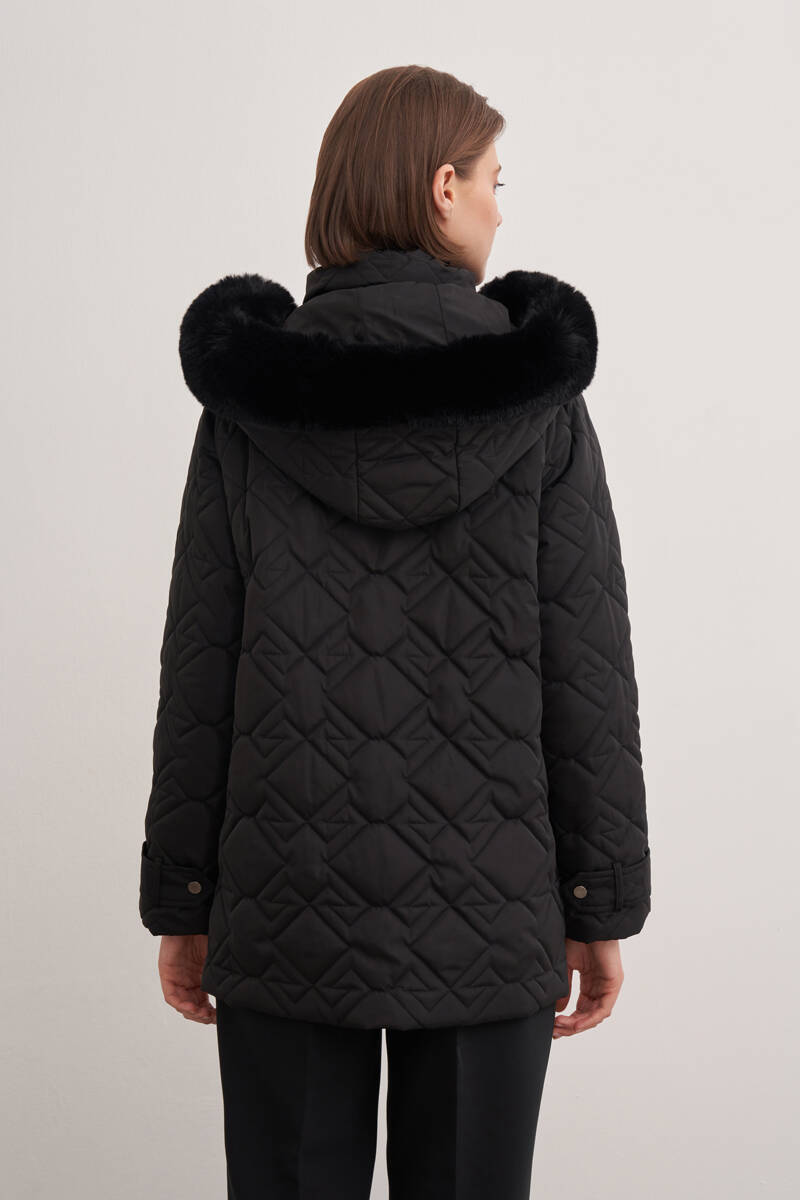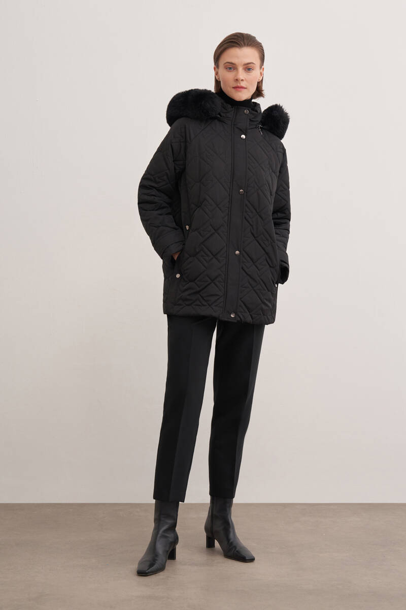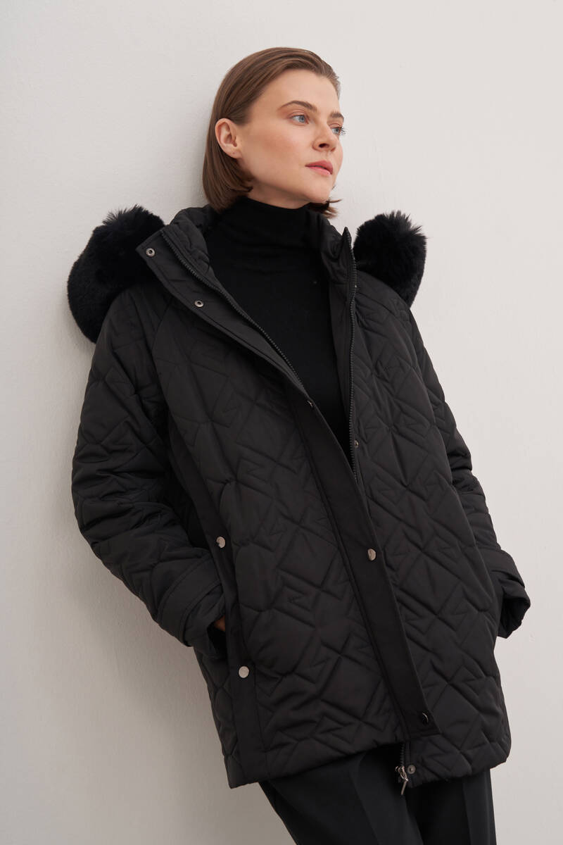 Siyah Kapüşonlu Astarlı Mont