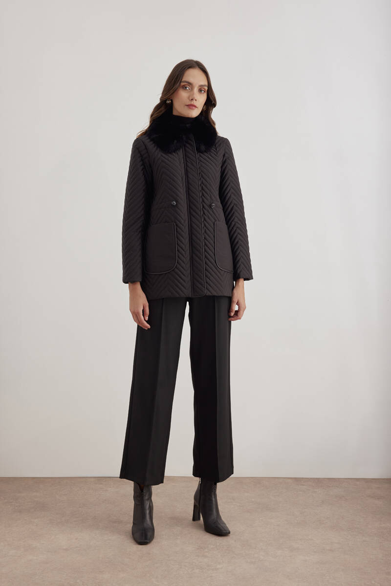 Haki 5829111 Yaka Detaylı Kapitone Kısa Mont