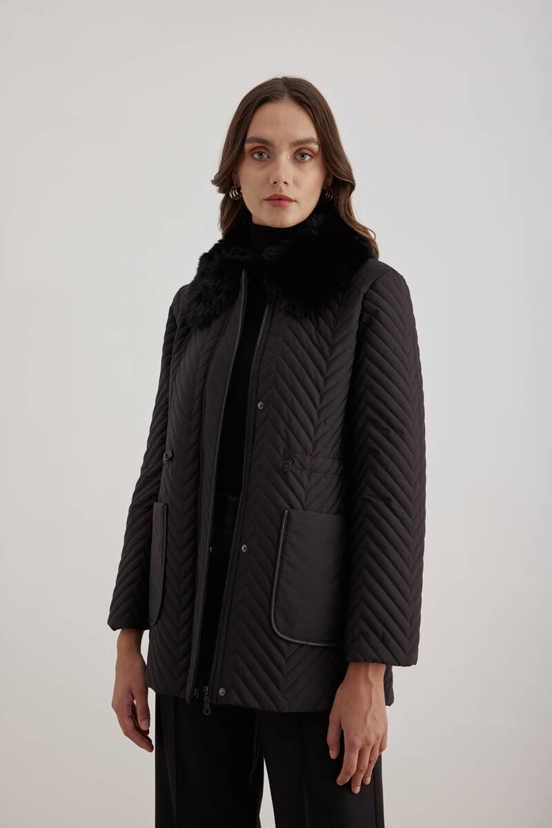 Siyah 10578111 Gömlek Yaka Mont
