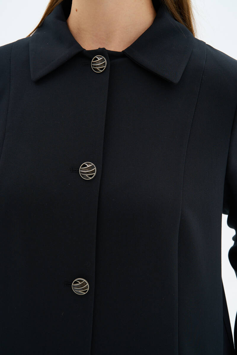Siyah Klasik Kesim Manto