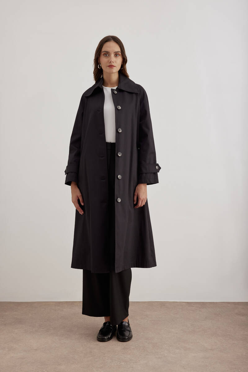 Siyah 7648111 İşleme Detaylı Kruvaze Kapama Trençkot