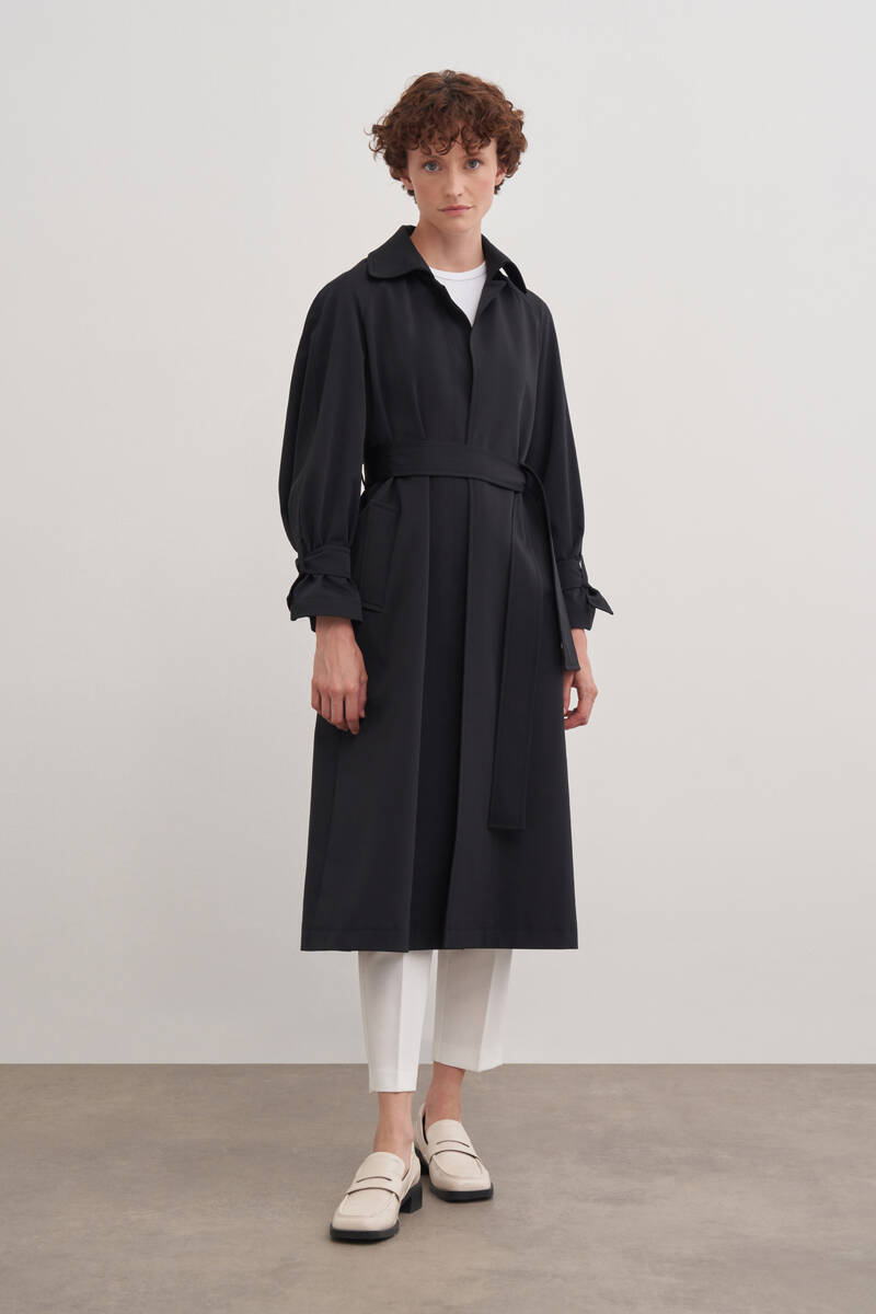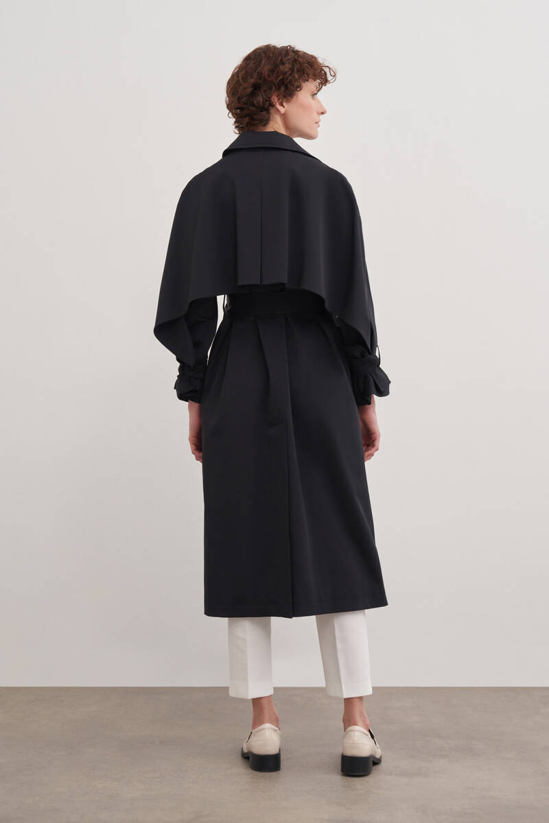 Siyah 7172111 Kolları Apolet Detaylı Trençkot