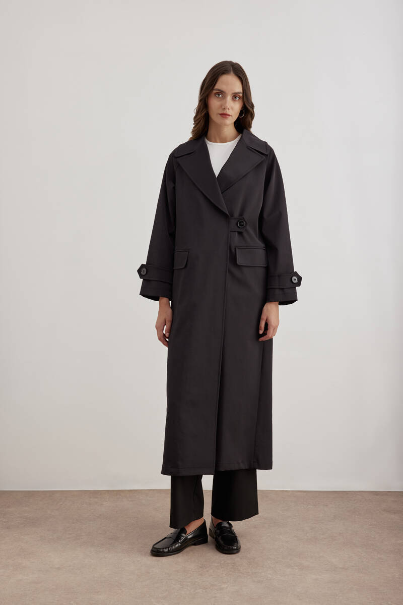 Siyah 7177111 Tek Düğmeli Pardösü
