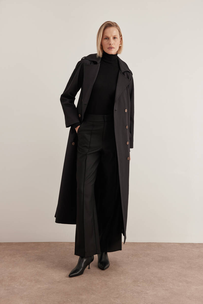 Haki Yanları Yırtmaçlı Keten Pardösü