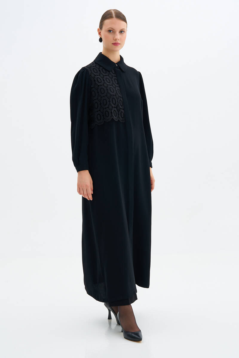 Yeşil Anler Detaylı Fermuarlı Ferace