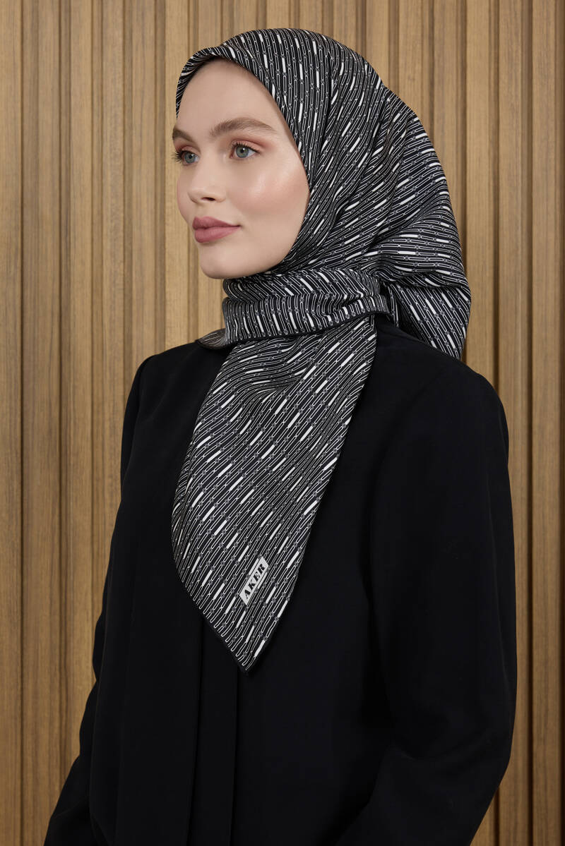 Logo Desenli 90X90 İpek Krep Saten Eşarp
