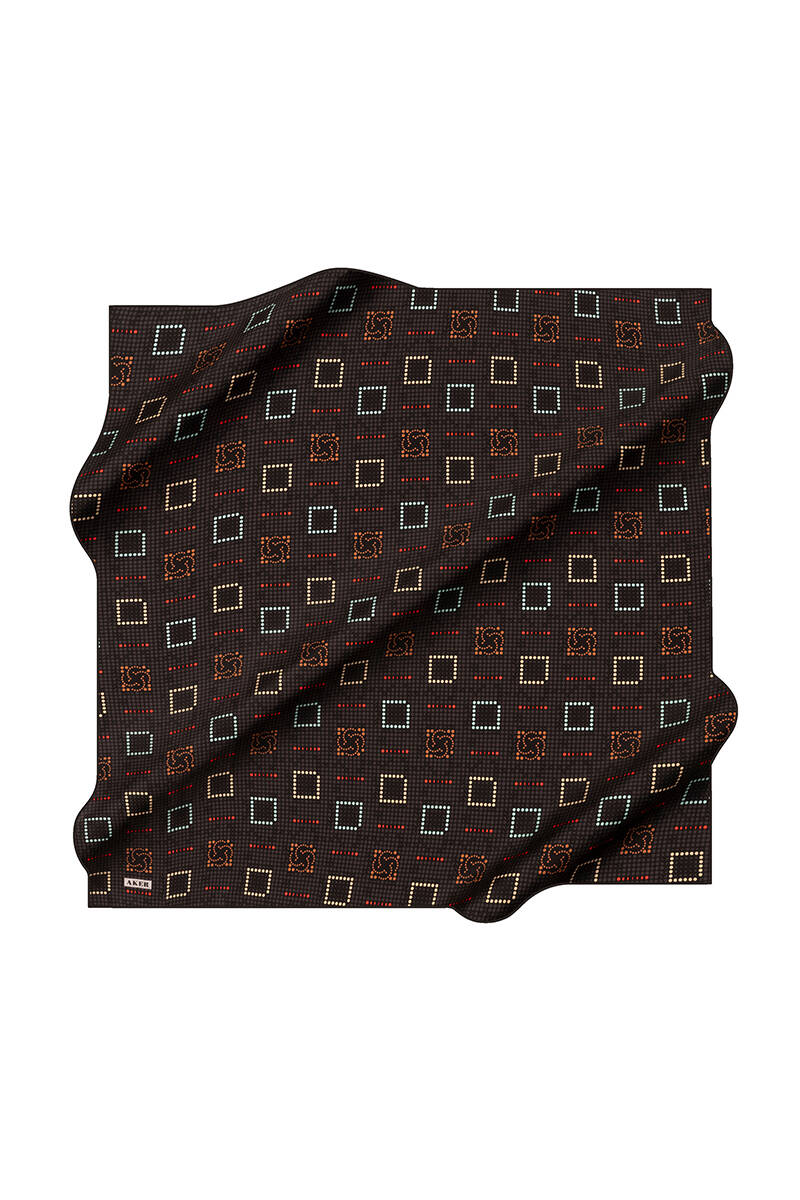 Geometrik Desenli 90X90 İpek Krep Saten Eşarp