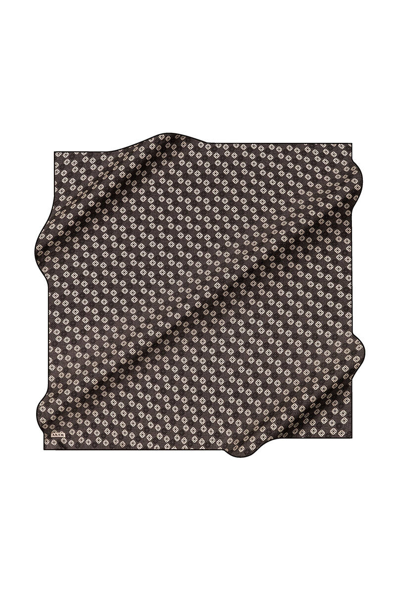 Logo Desenli 90X90 İpek Krep Saten Eşarp