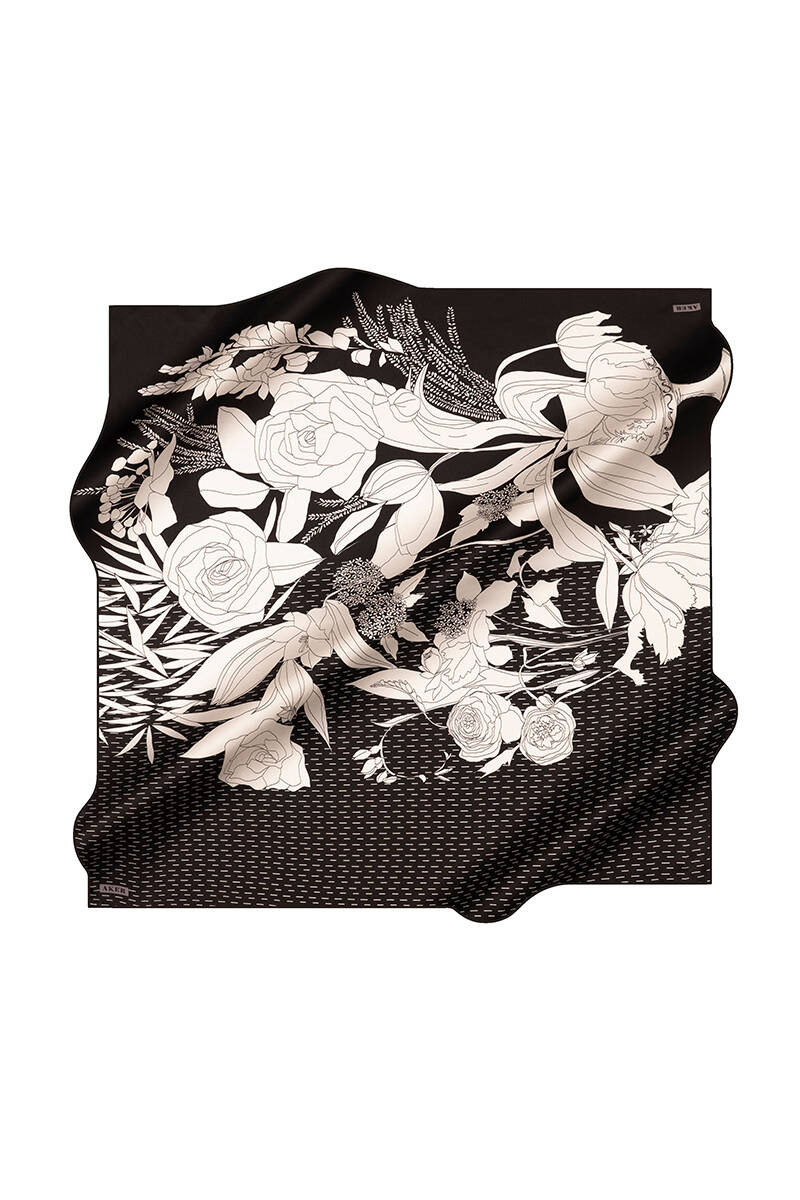 Çiçek Desenli 90X90 İpek Krep Saten Eşarp