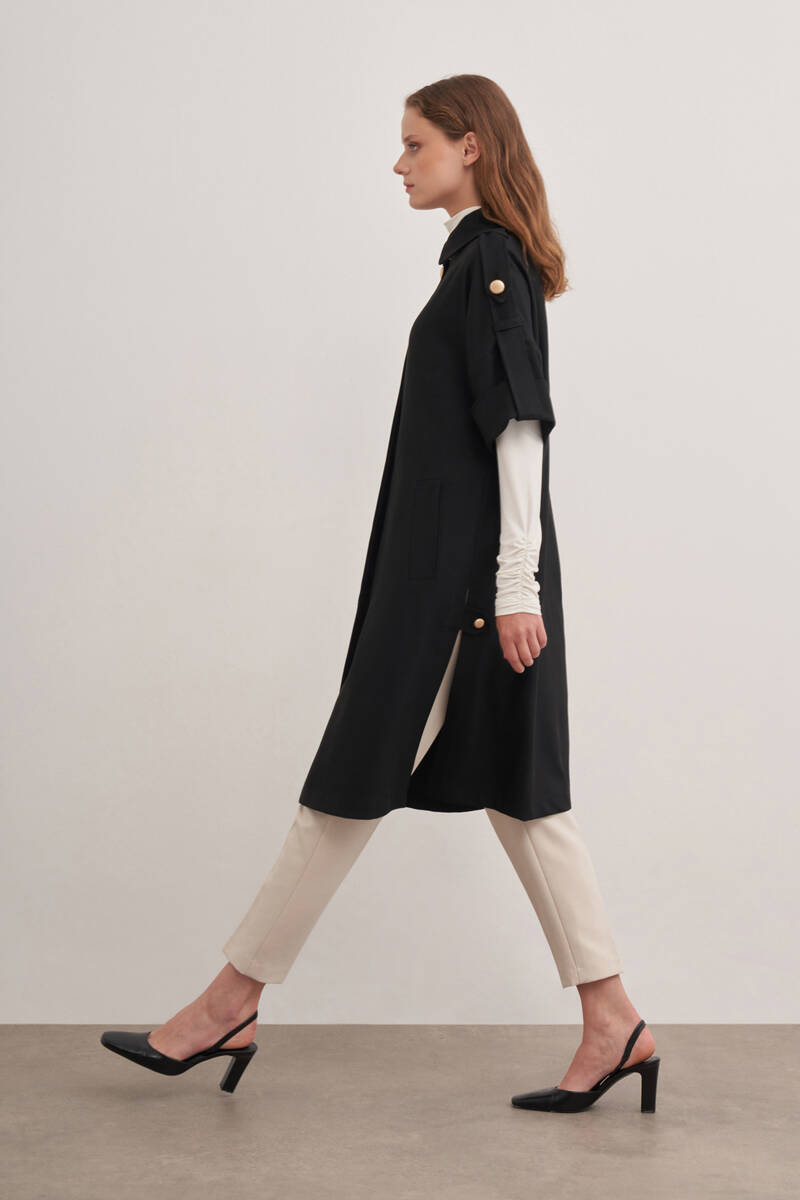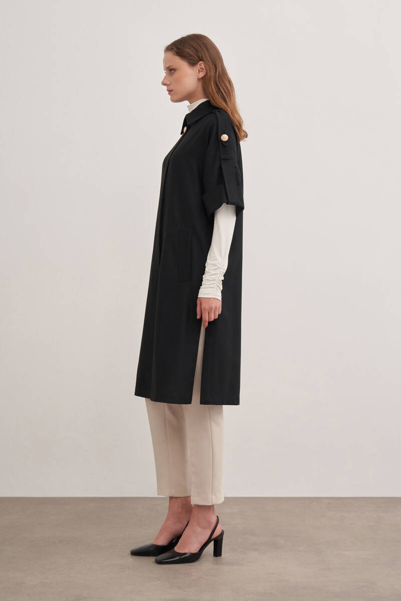 Siyah 9144111 Apolet Detaylı Yelek