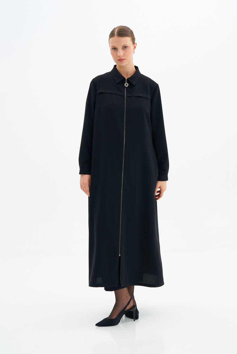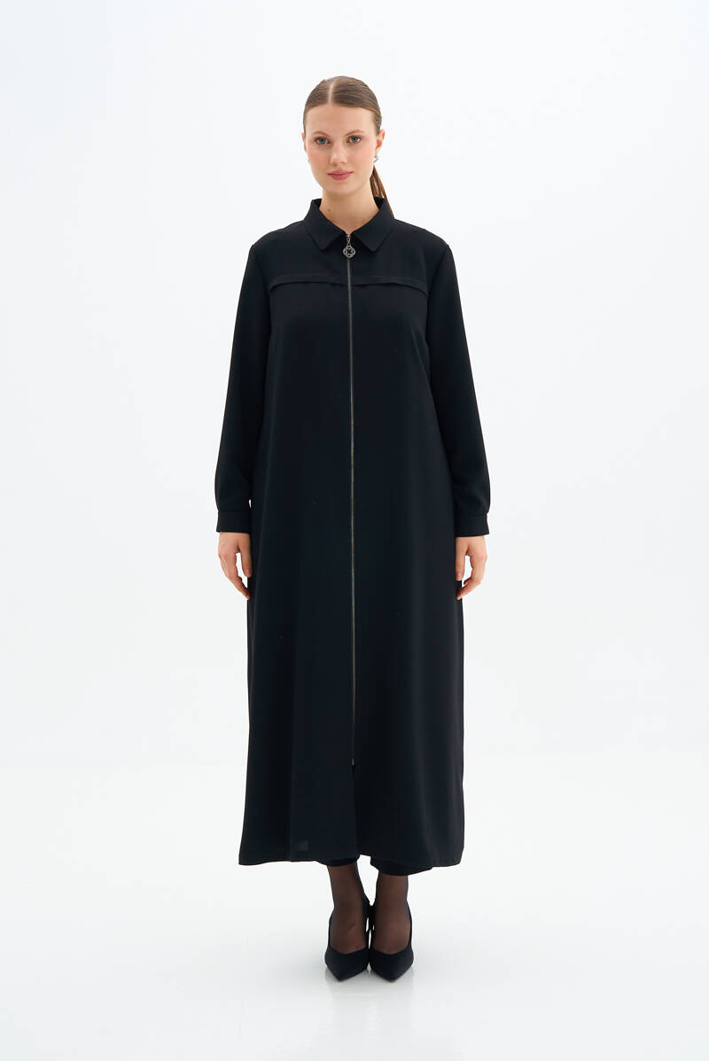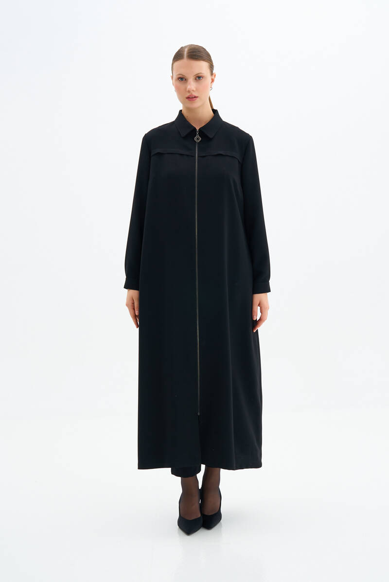 Yeşil Anler Detaylı Fermuarlı Ferace