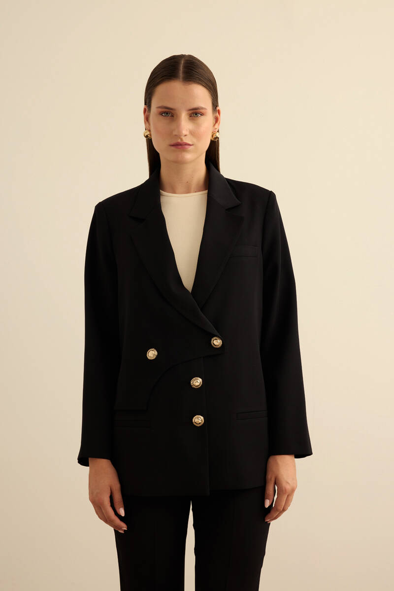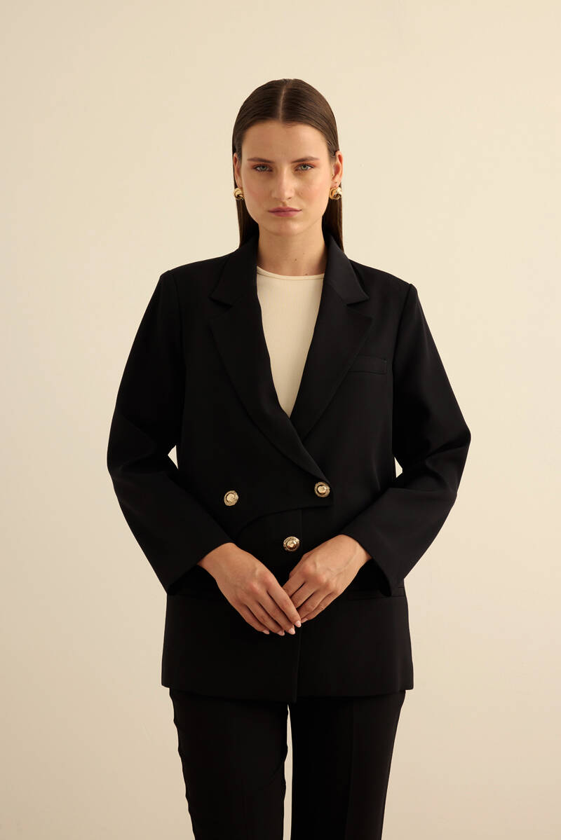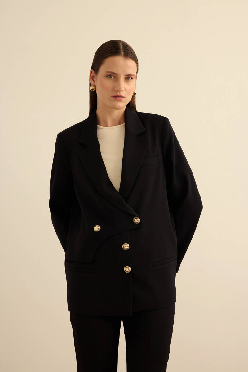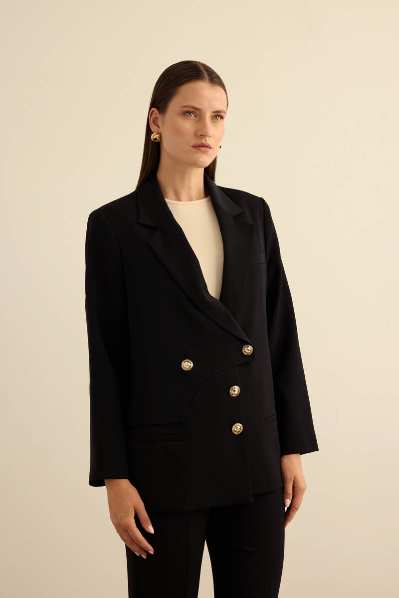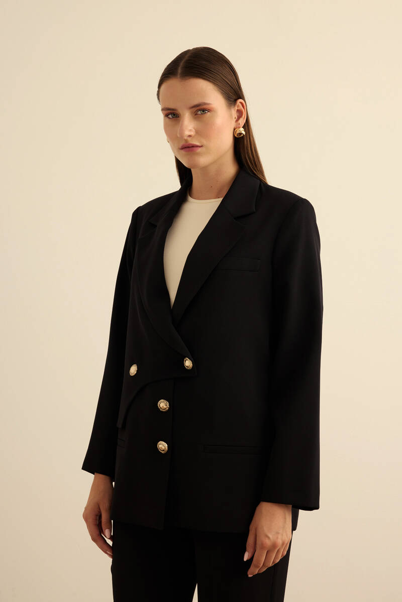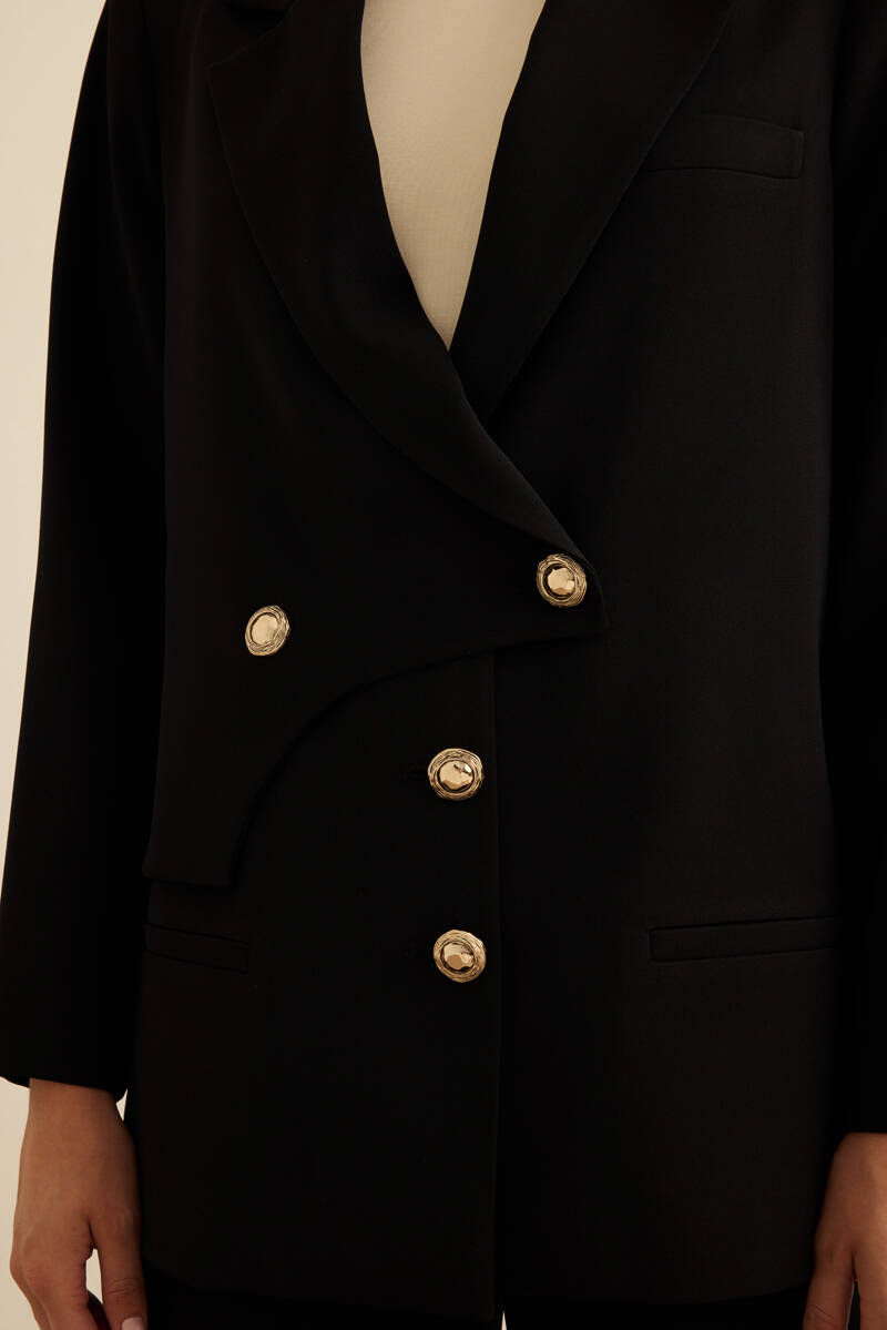 Siyah Önden Çıtçıtlı Dokuma Yelek