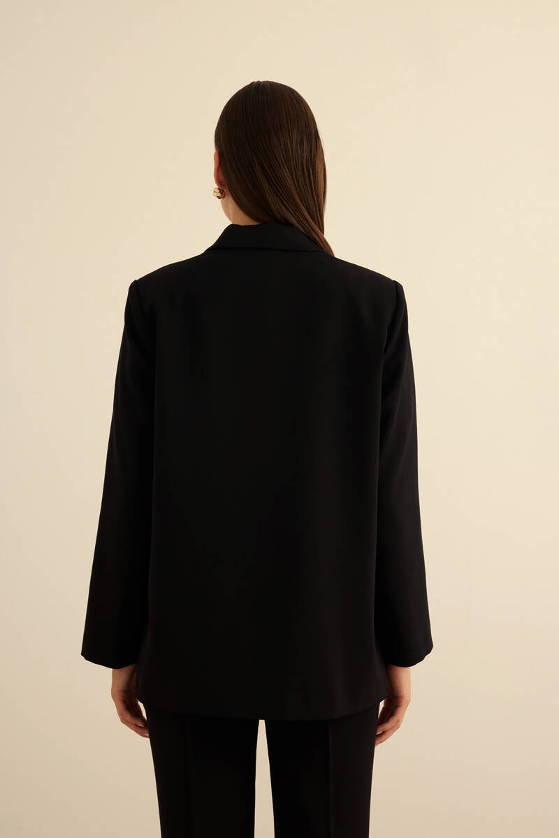 Siyah Doğal Dokulu Kumaş Gömlek Elbise