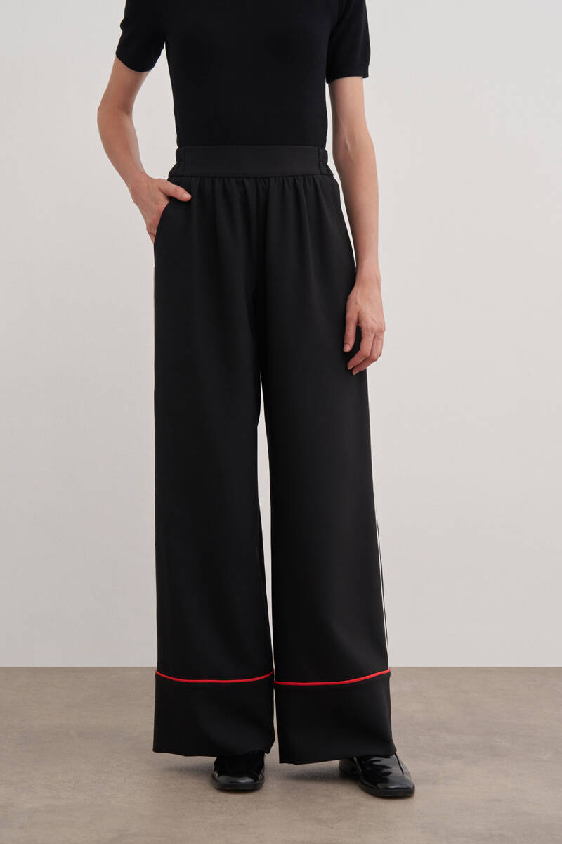 Siyah Beli ve Paçası Lastikli Balon Form Keten Pantolon