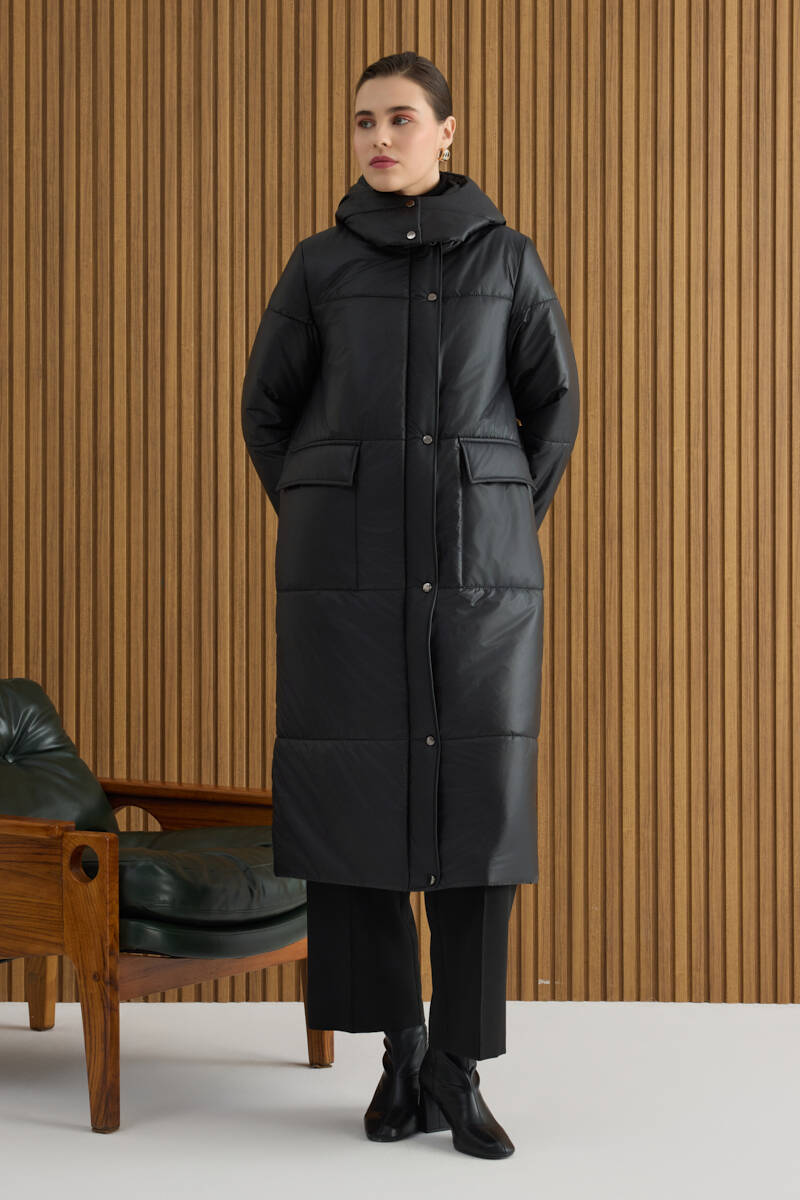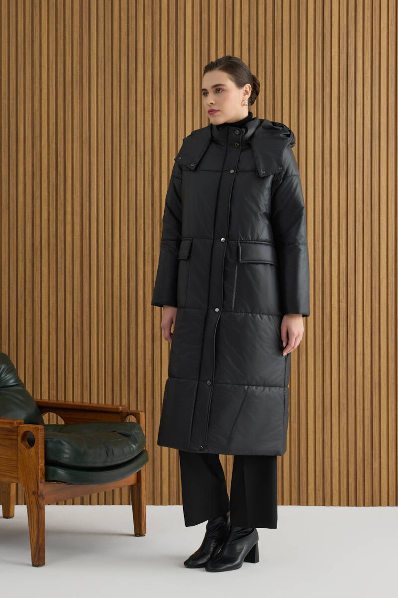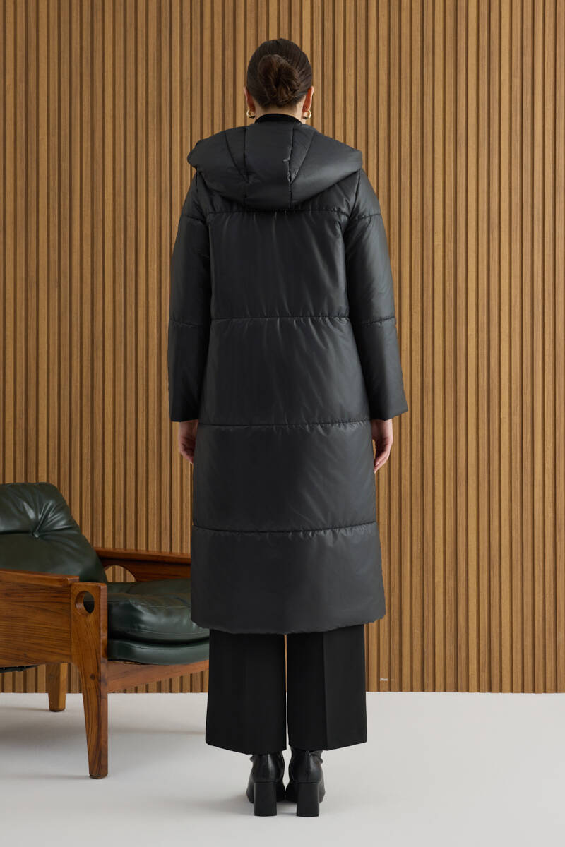 Siyah 5791111 Kapüşonlu Kapitone Mont