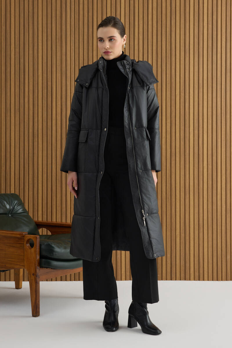 Siyah Kapüşonlu Astarlı Mont