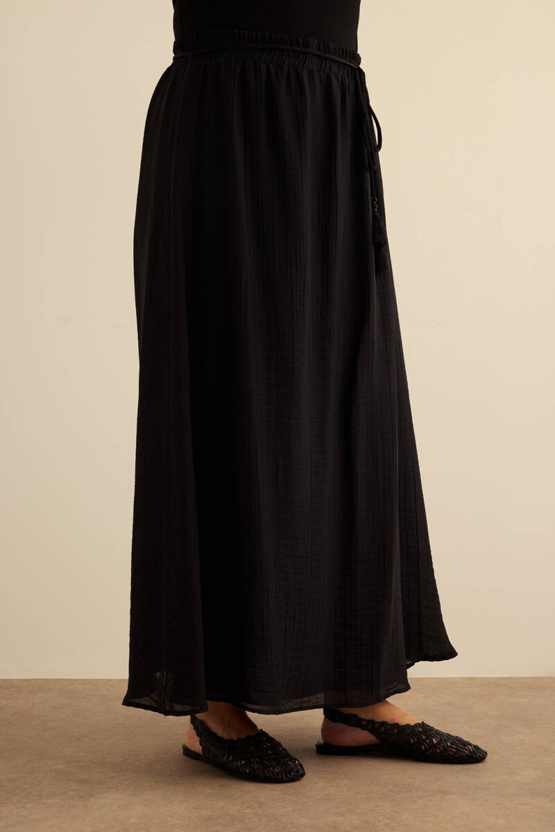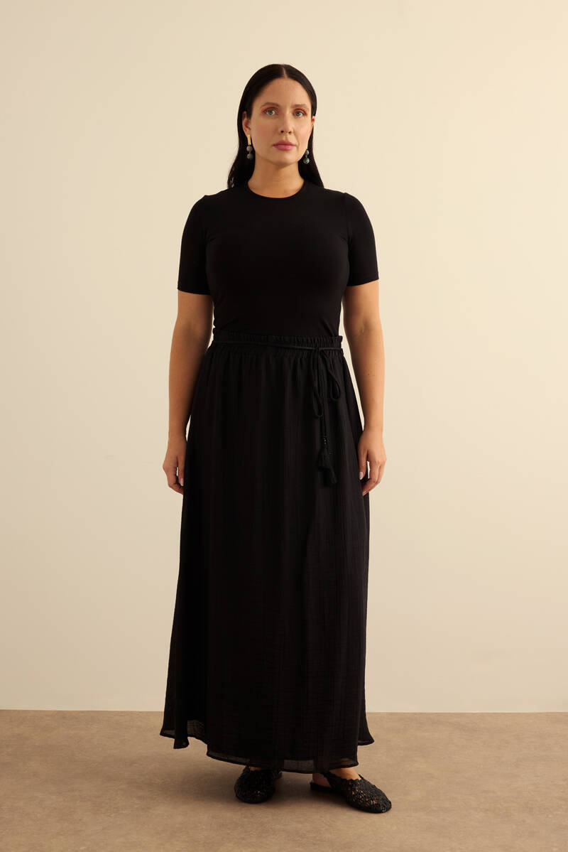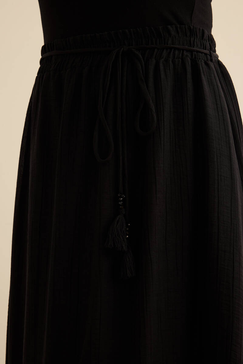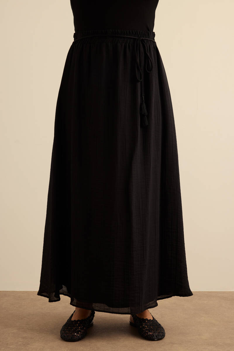 Siyah Beli Lastikli Robalı Dokuma Etek