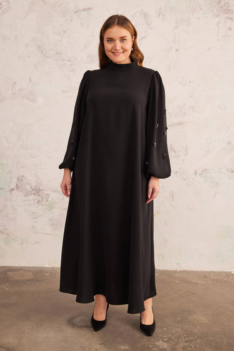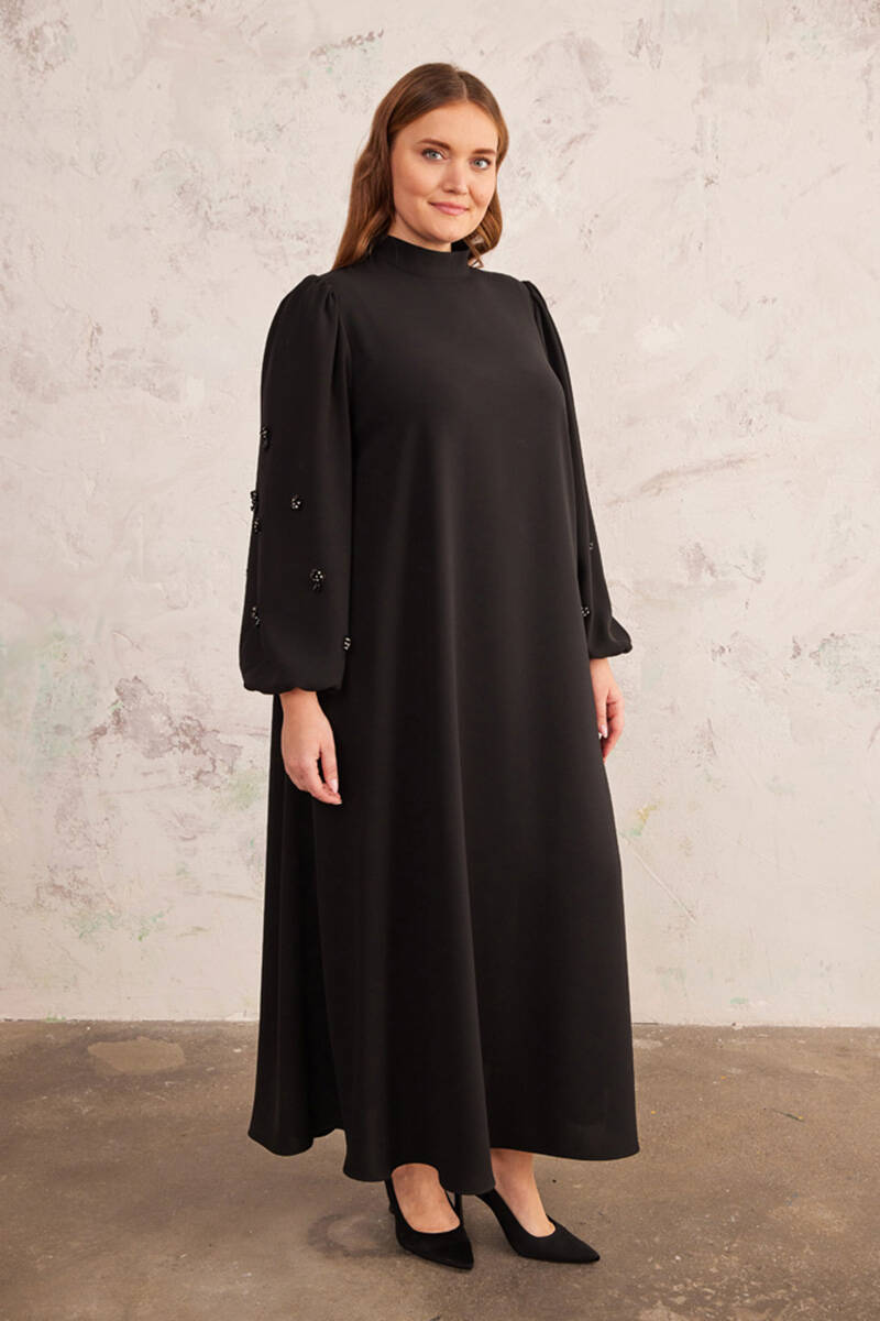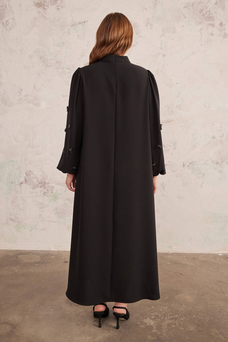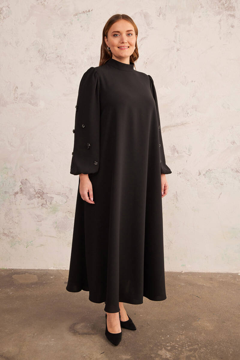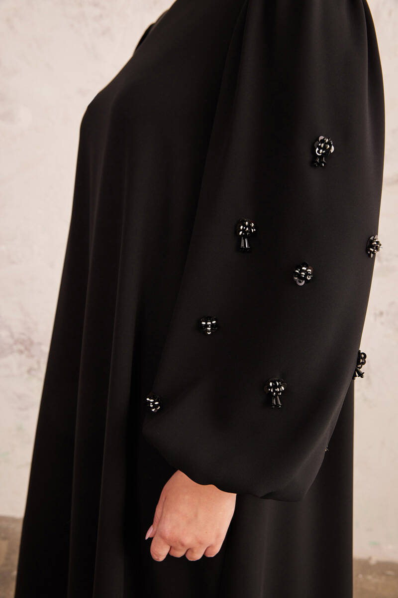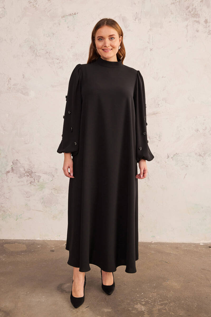Siyah Balon Kol İşlemeli Abiye Elbise