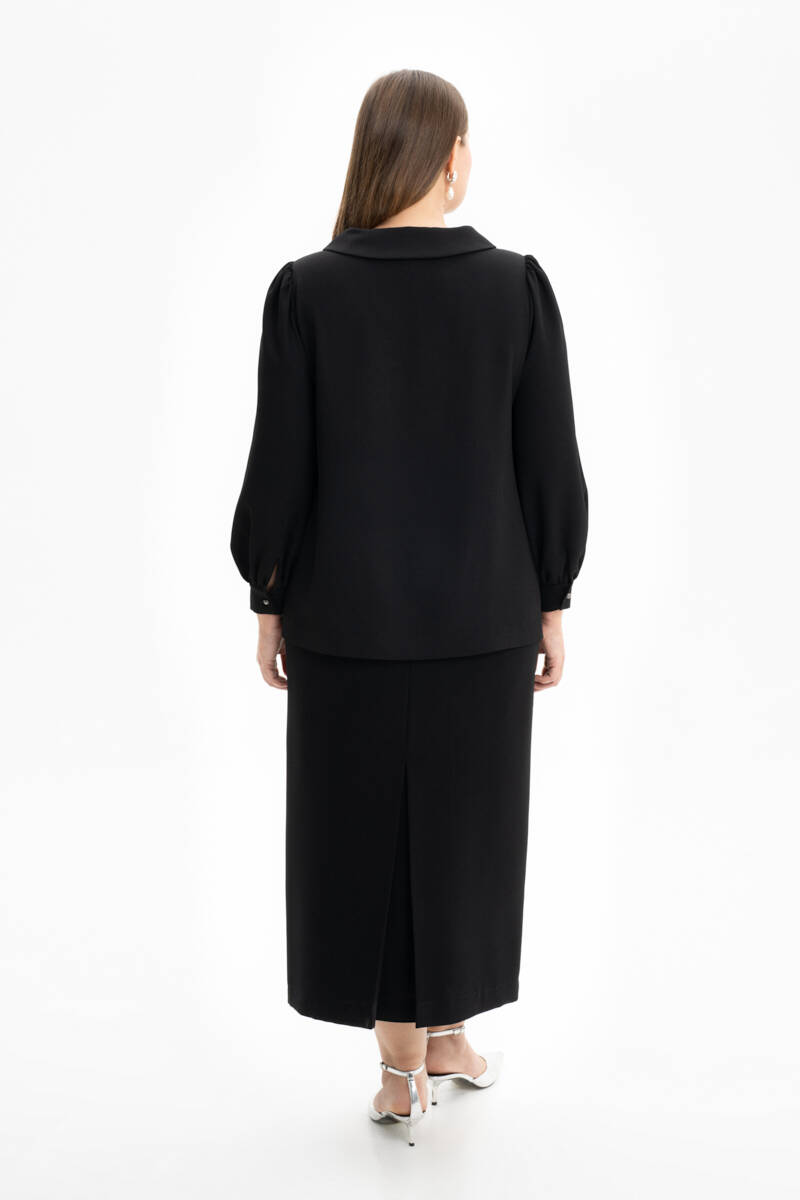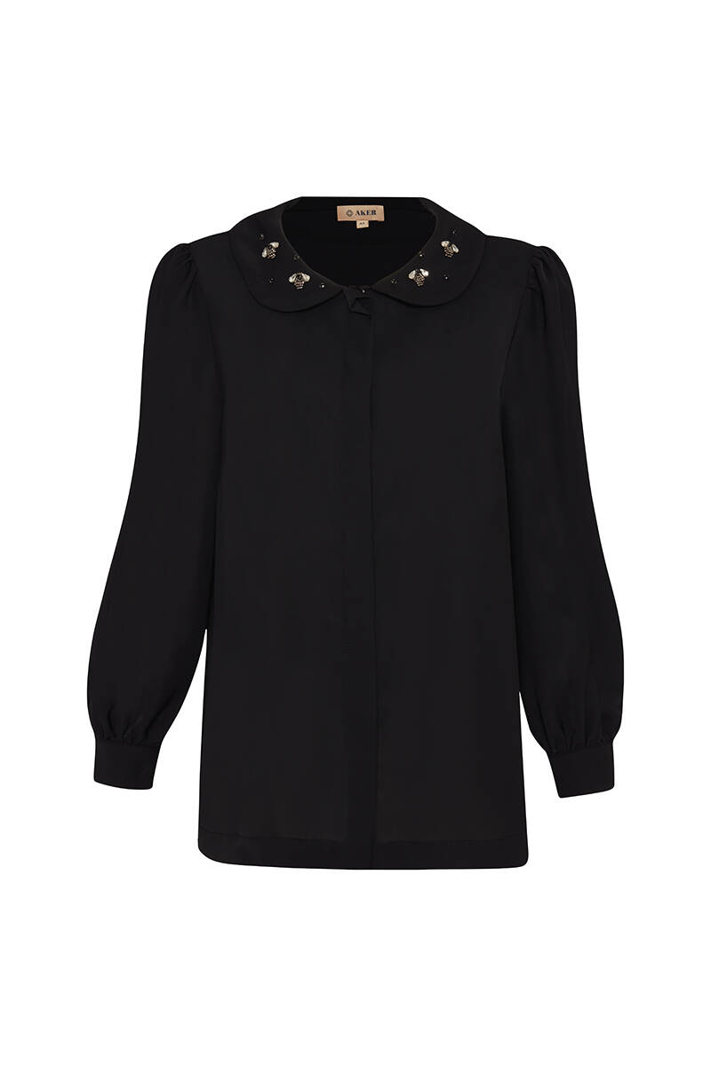 Siyah Gül Broşlu Bluz