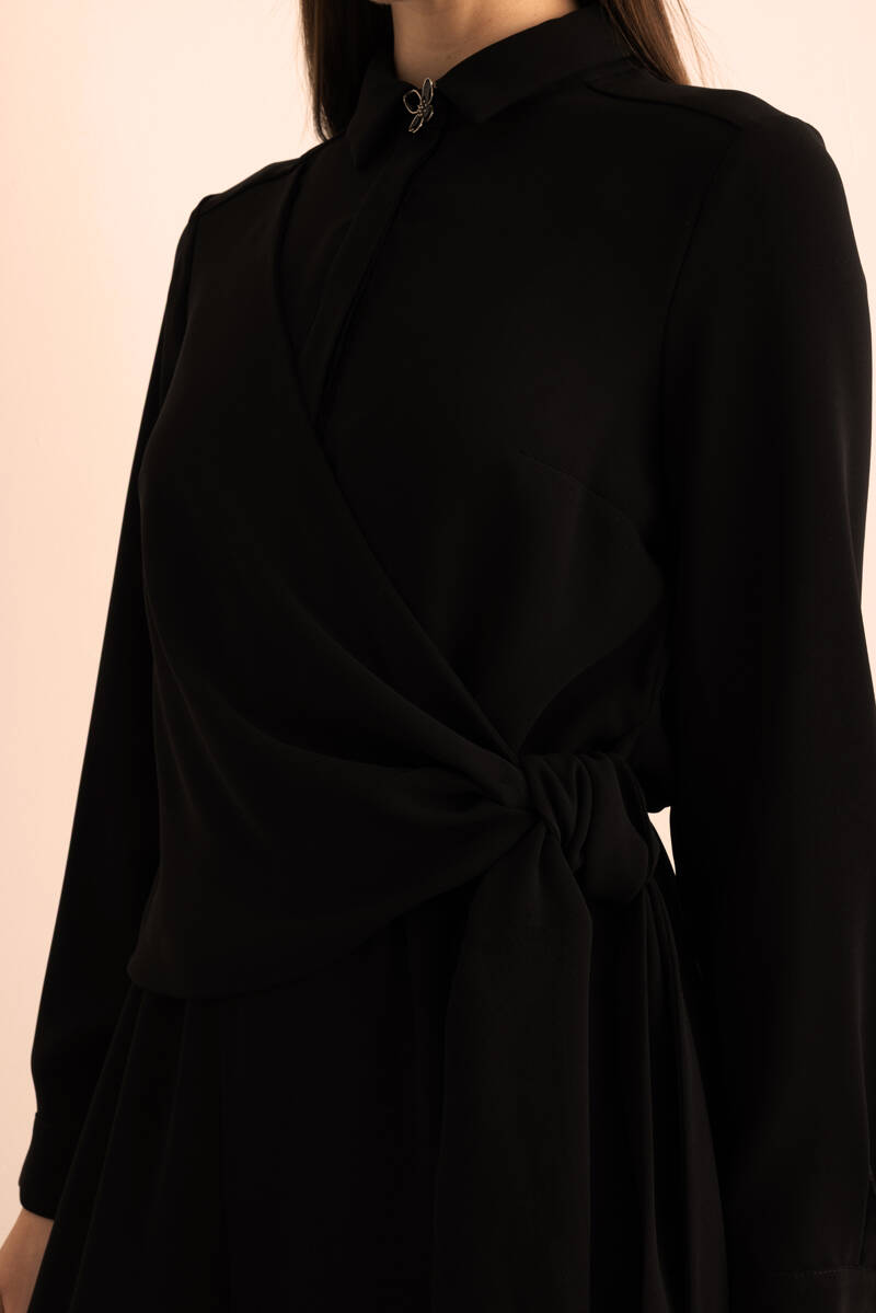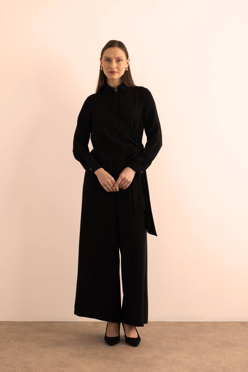 Siyah Hakim Yaka , Kuşak Bağlamalı Dökümlü Tulum