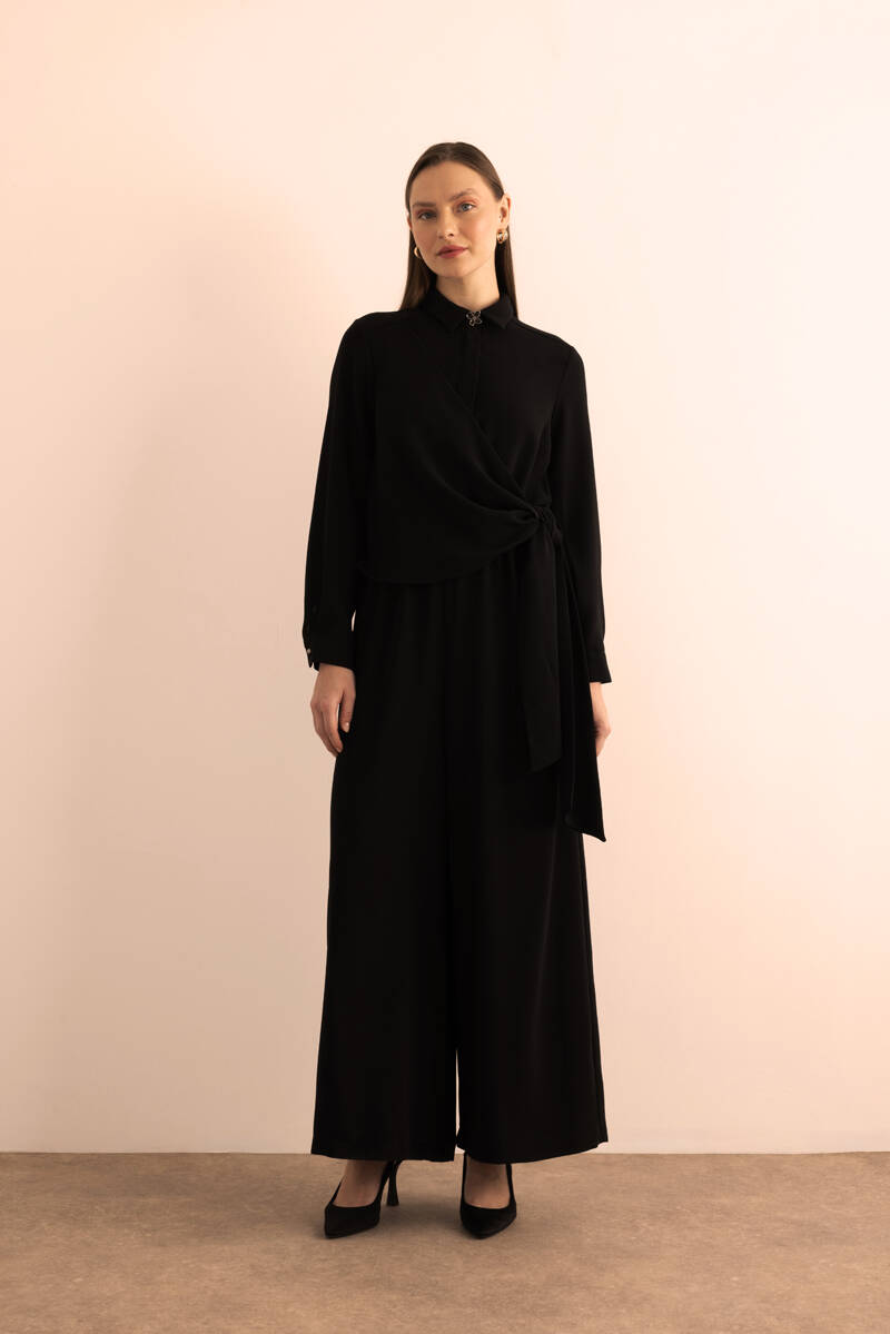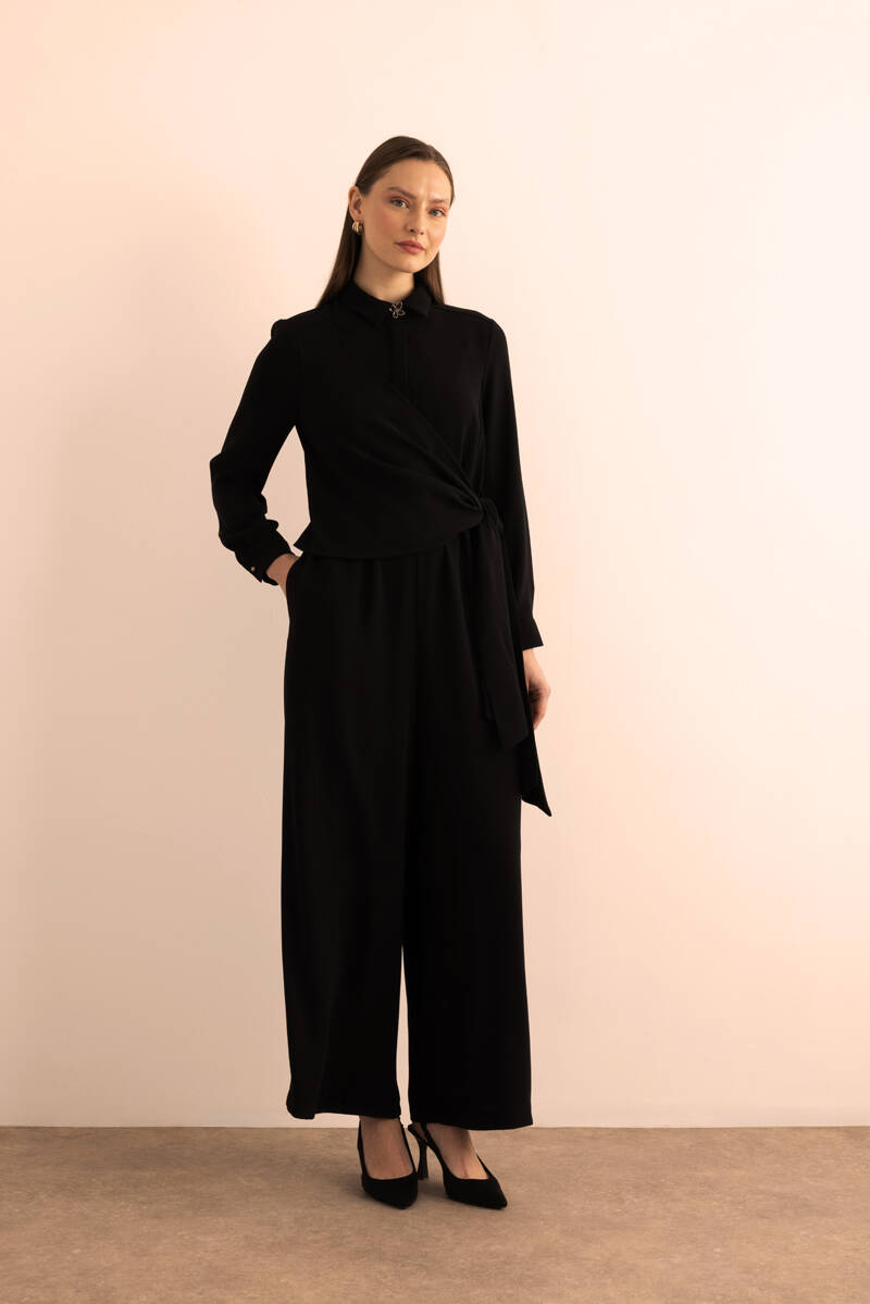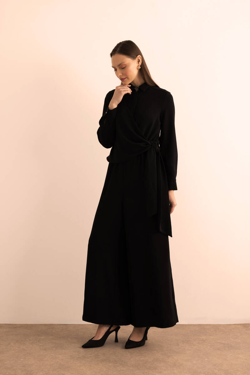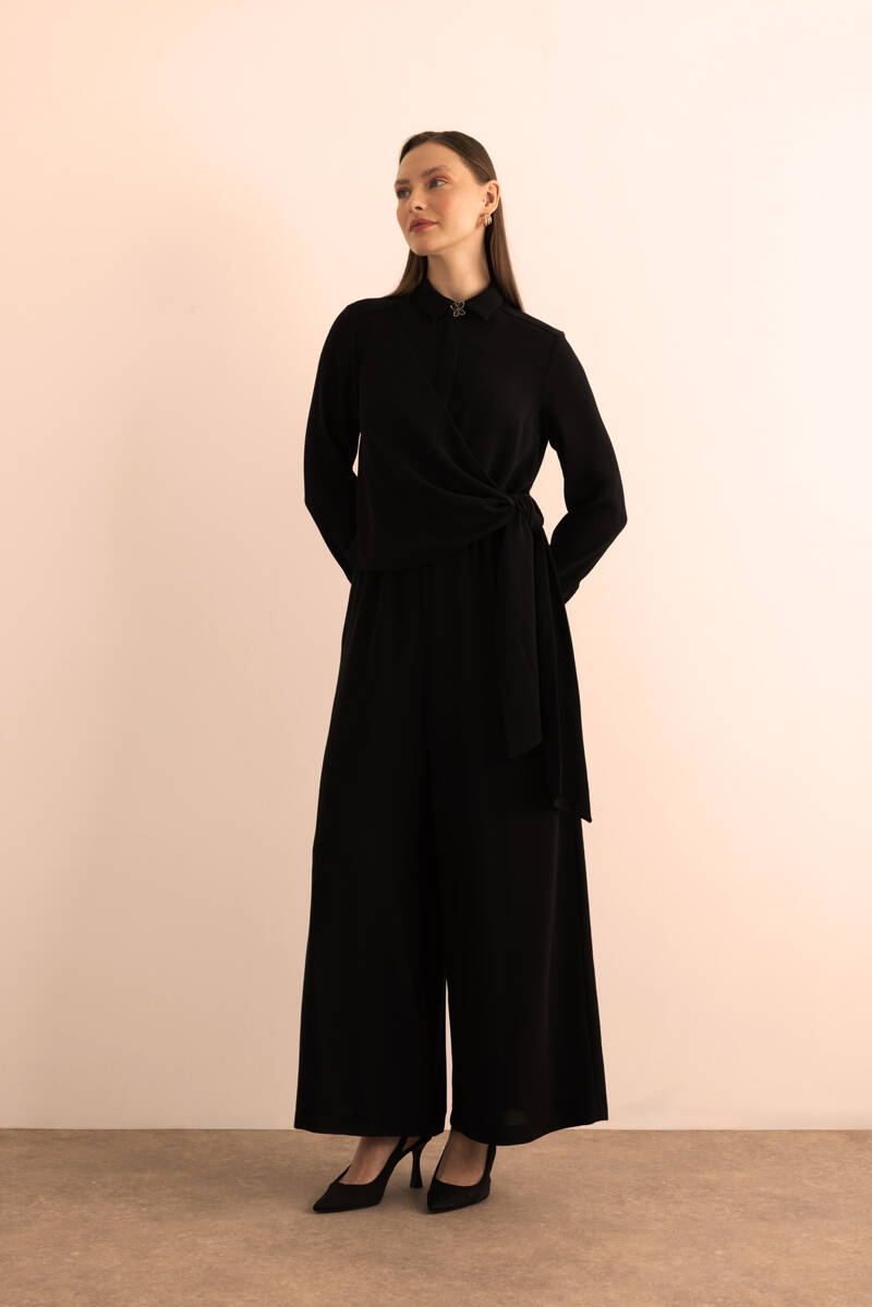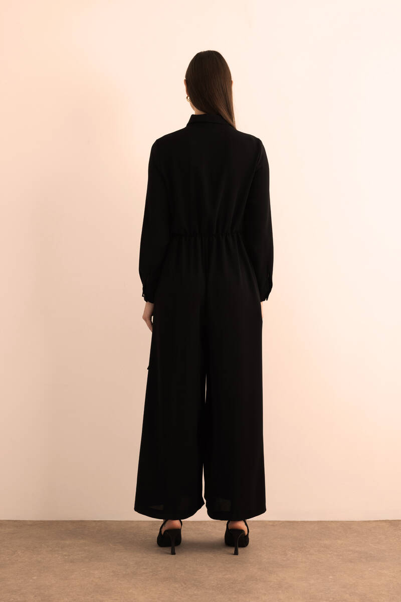 Siyah Seyyar Kemerli Detaylı Tulum