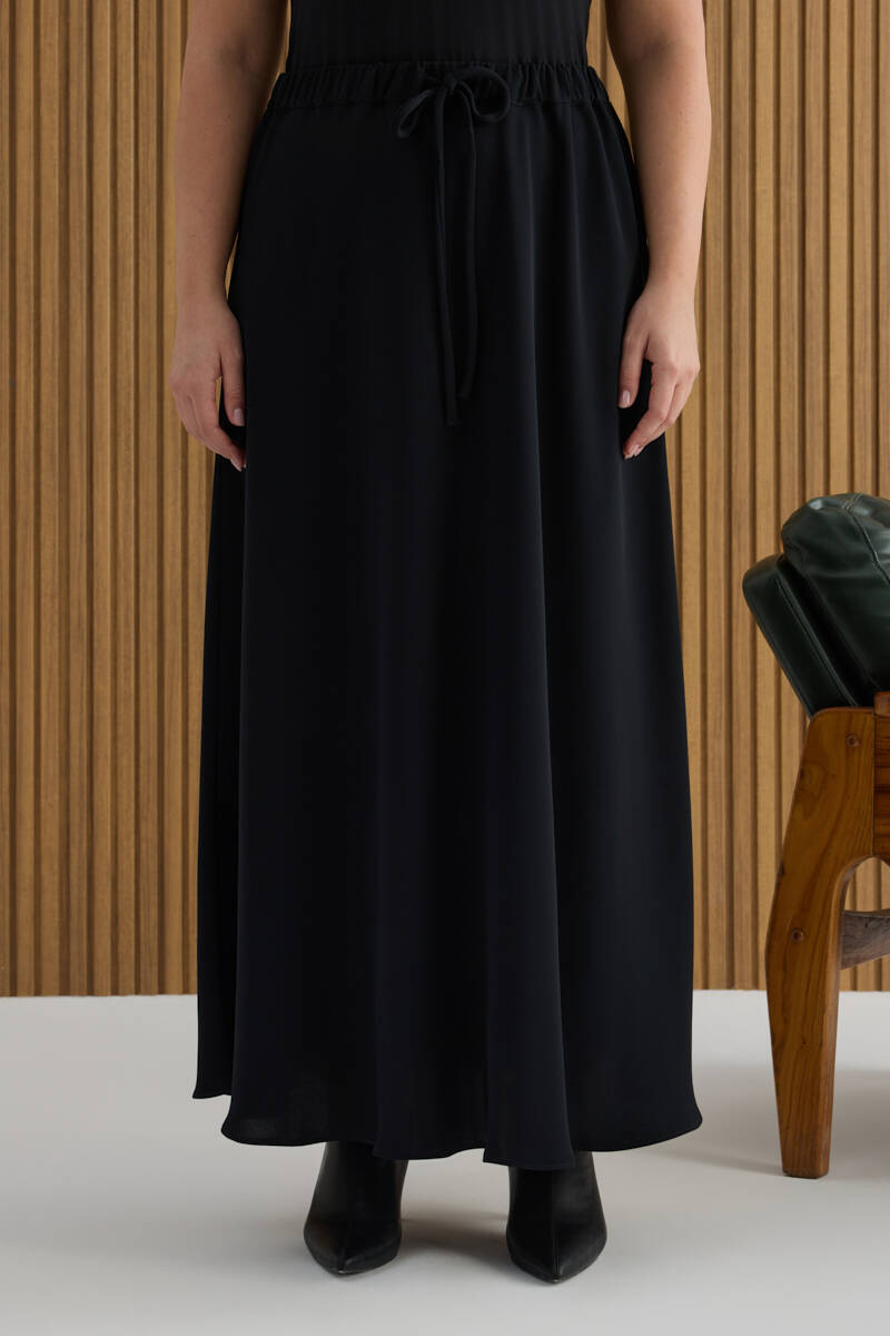 Siyah Beli Lastikli Robalı Dokuma Etek