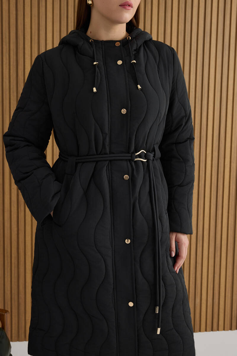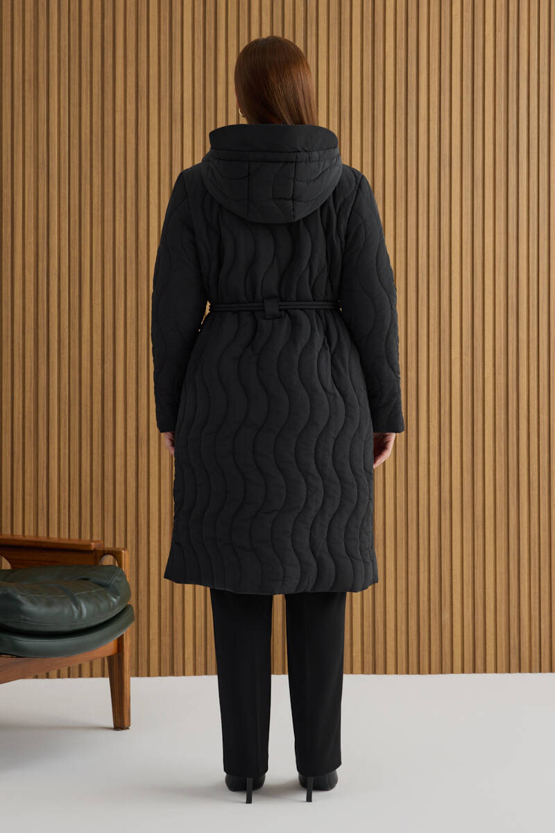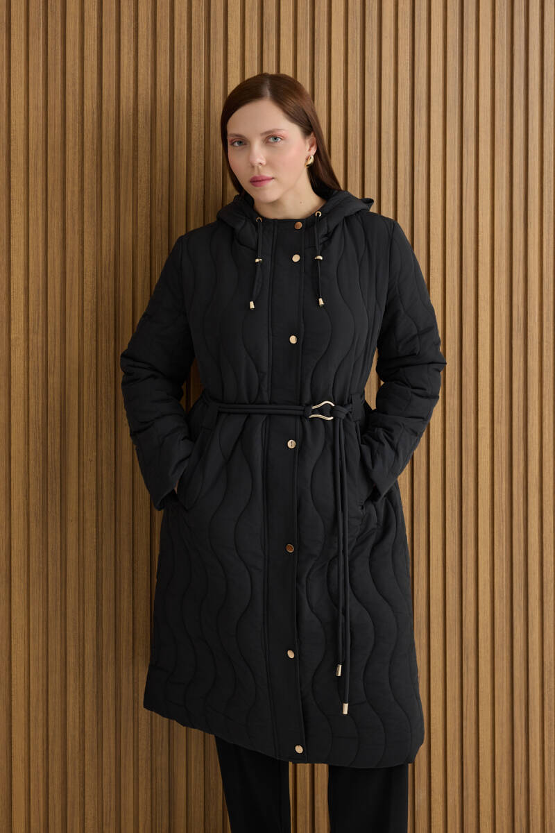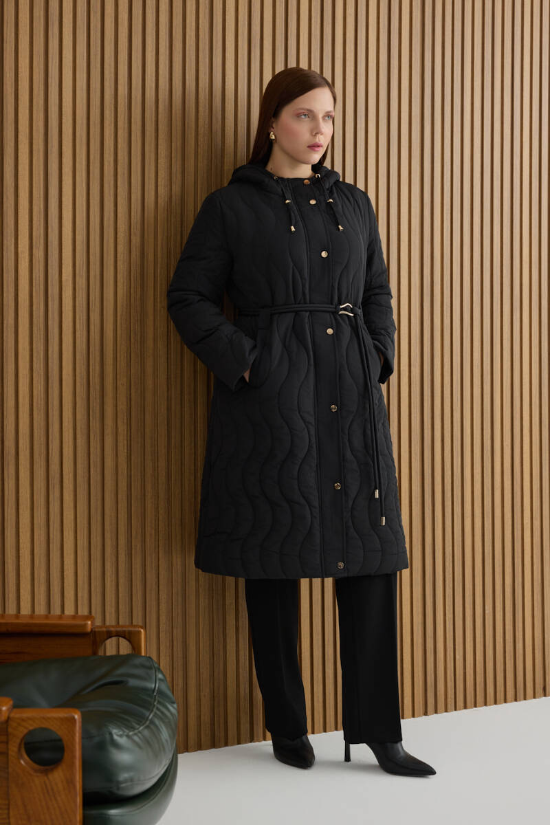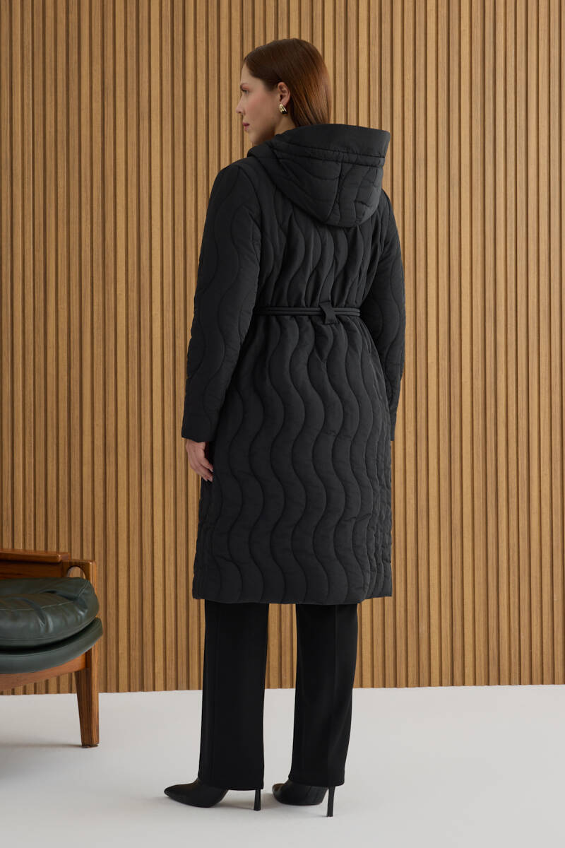 Siyah Seyyar Kapüşonlu Kapitone Mont