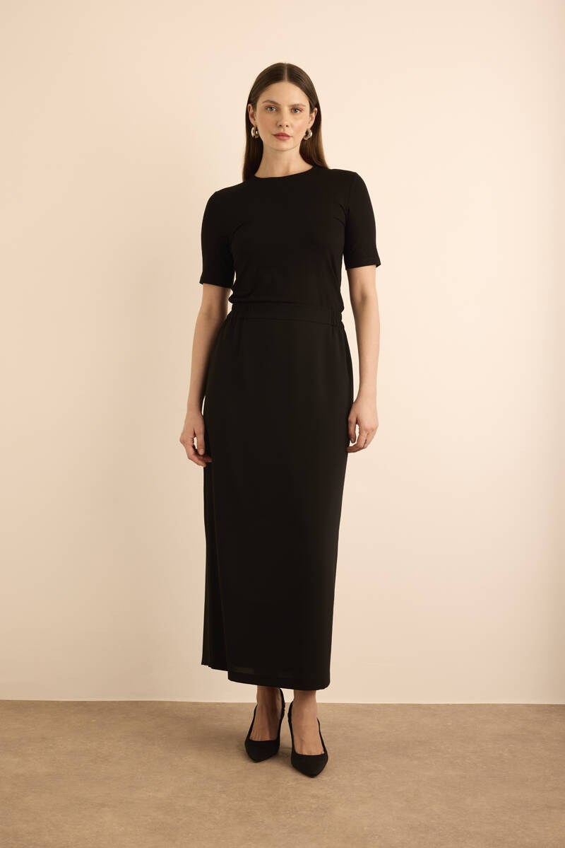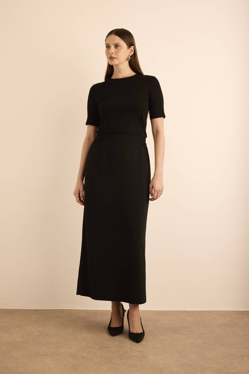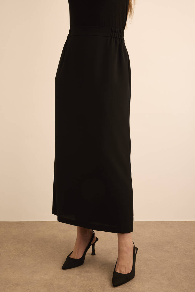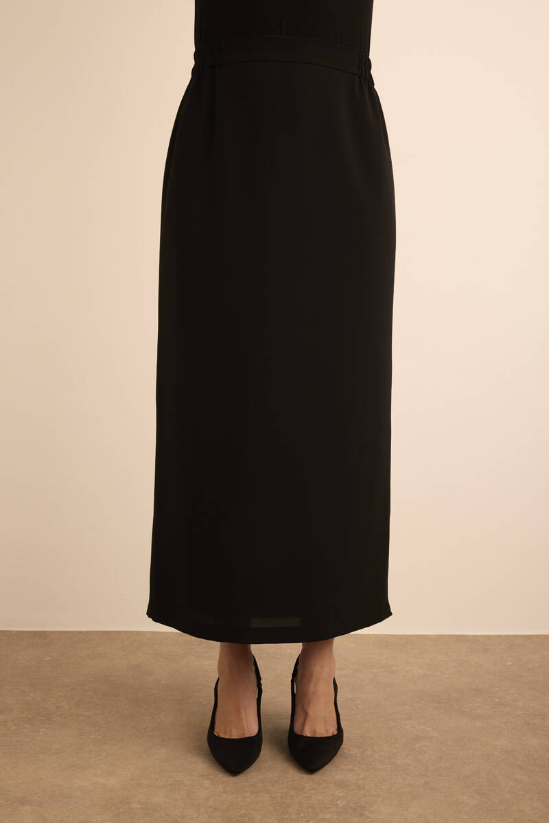 Siyah Beli Lastikli Robalı Dokuma Etek