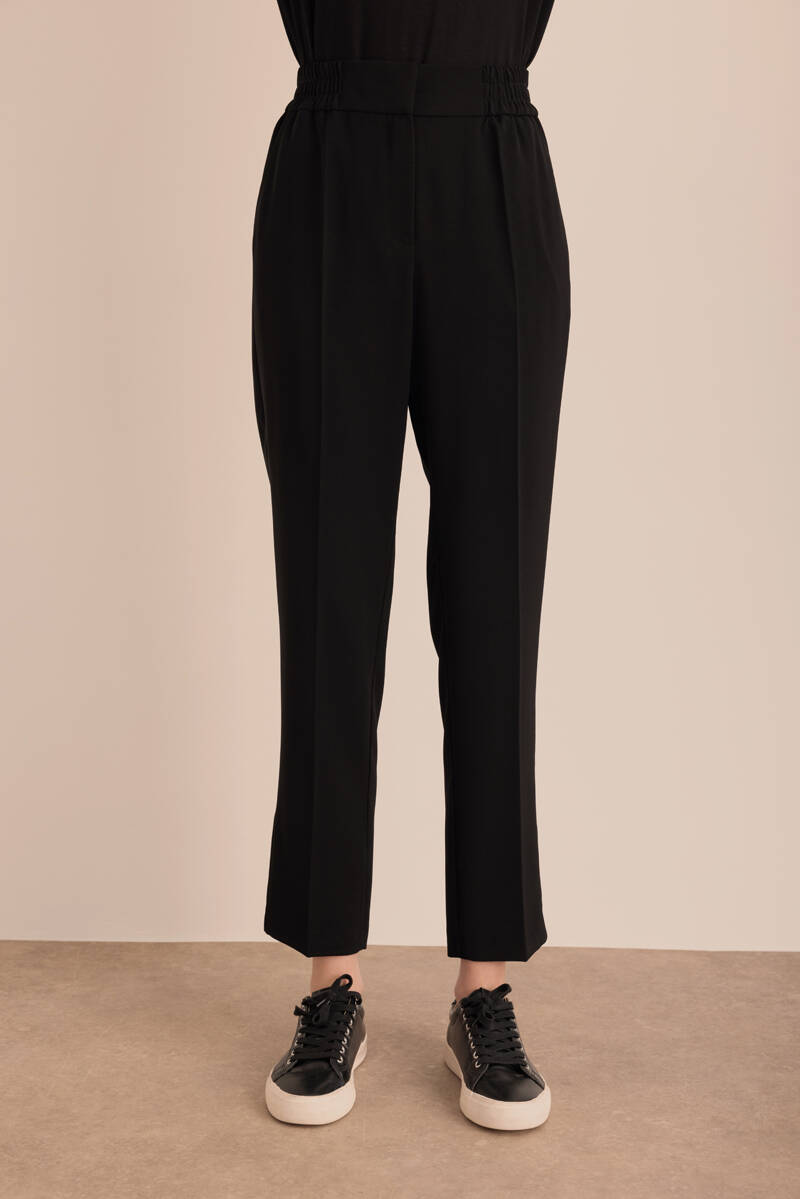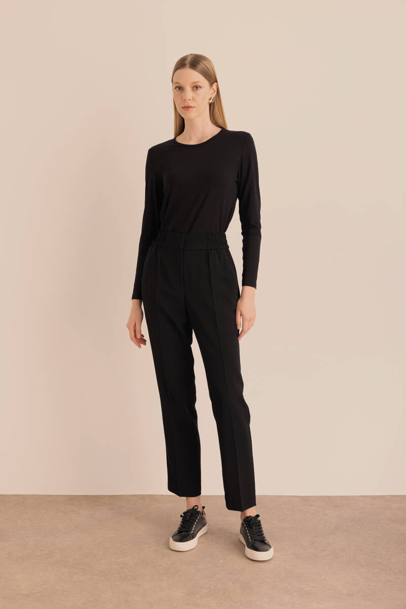 Siyah Belden Metal Toka Bağlama Detaylı Dokuma Pantolon