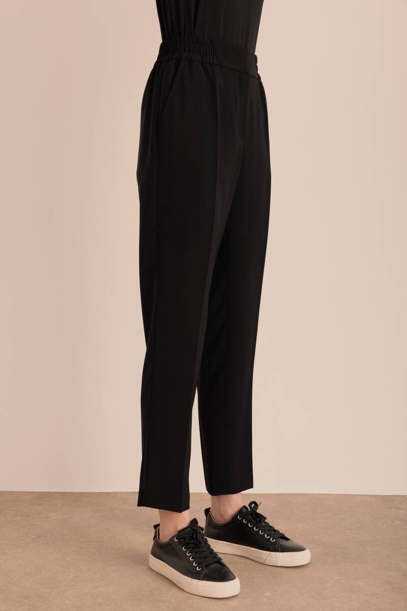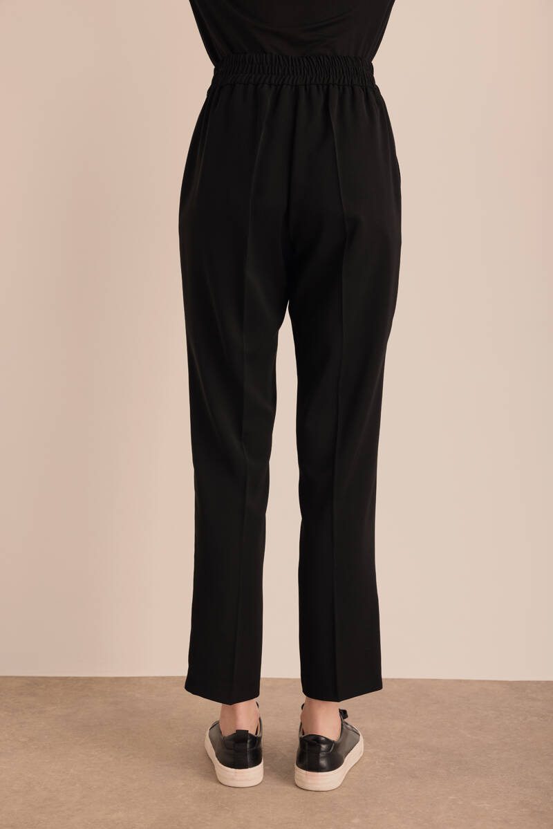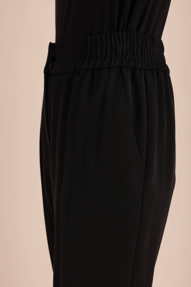 Siyah Beli ve Paçası Lastikli Balon Form Keten Pantolon