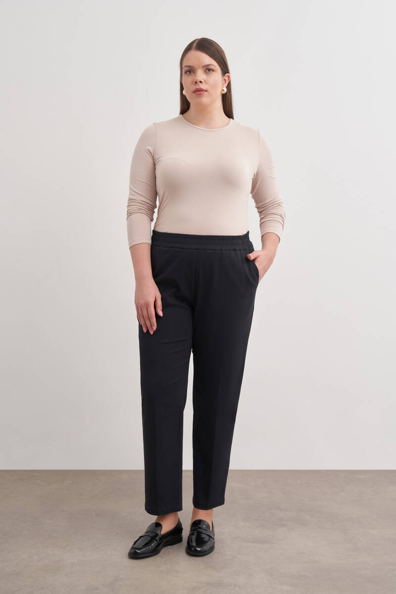 Siyah Beli Lastikli Dokuma Pantolon