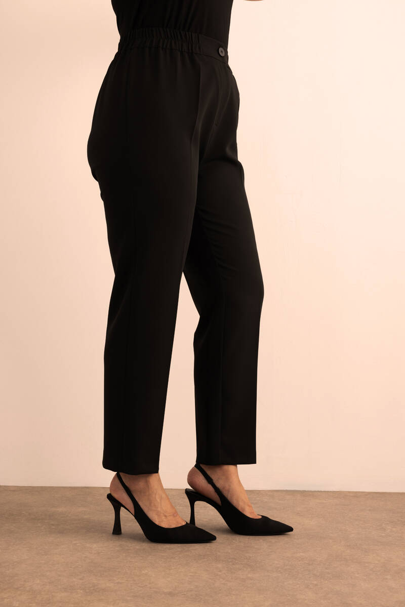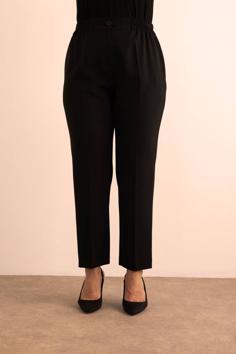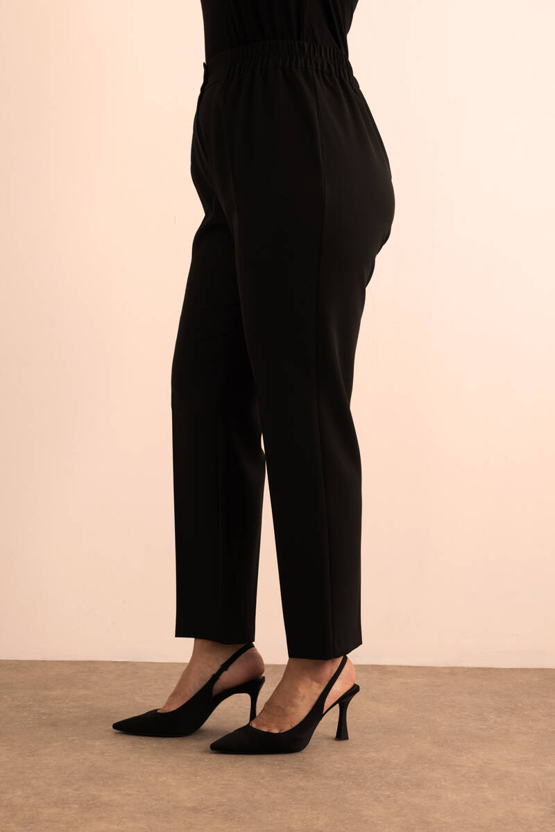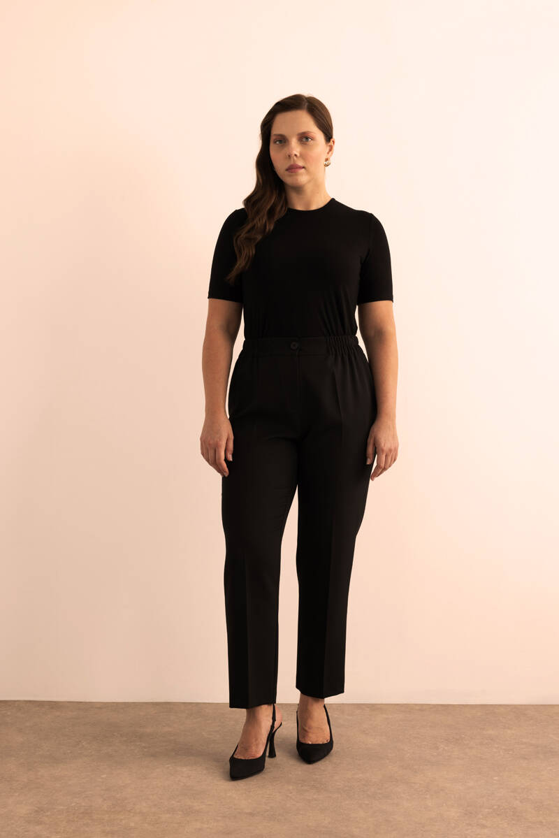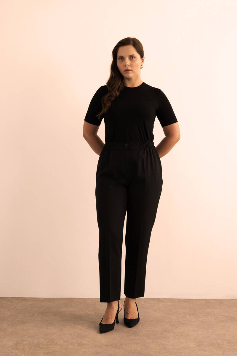 Siyah Beli Lastikli Dokuma Pantolon