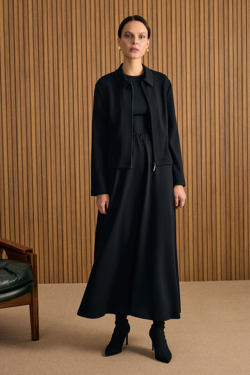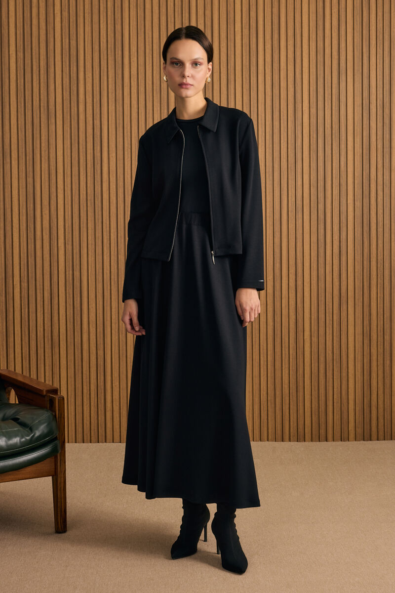 Siyah Kloş Yırtmaçllı Keten Etek