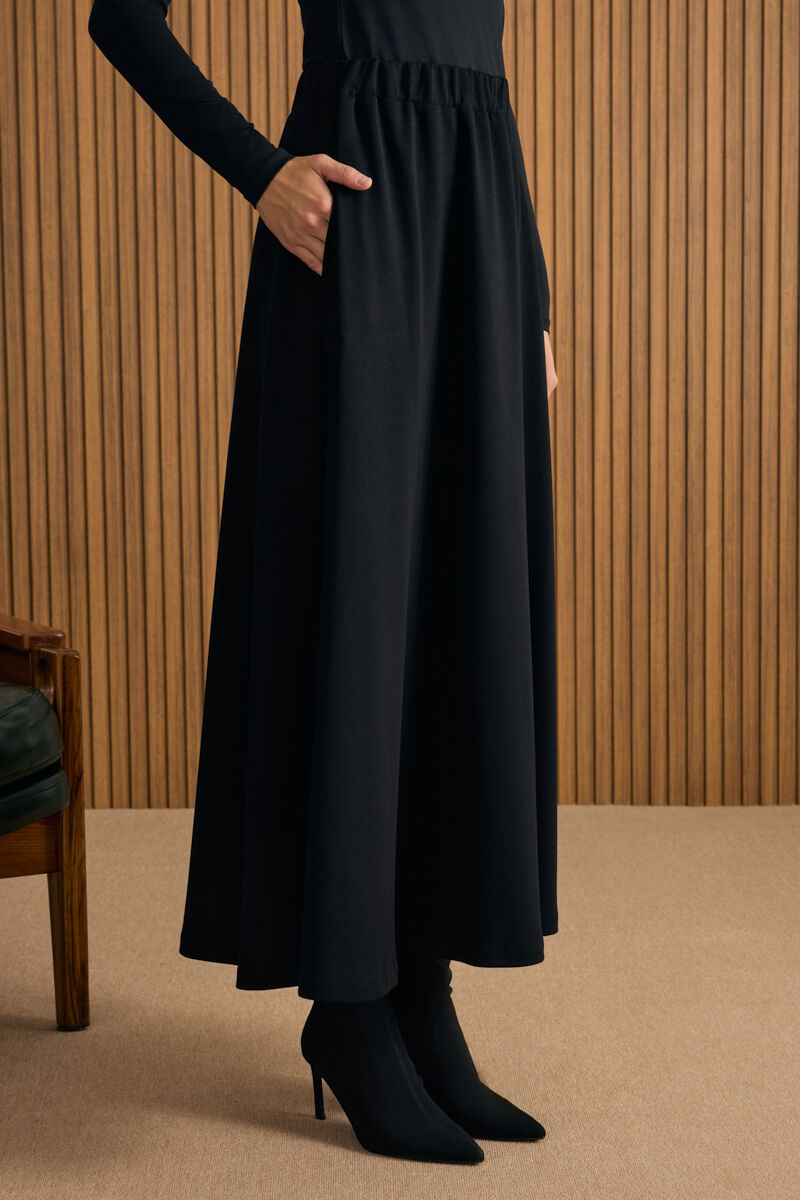 Siyah Örme Pantolon Etek
