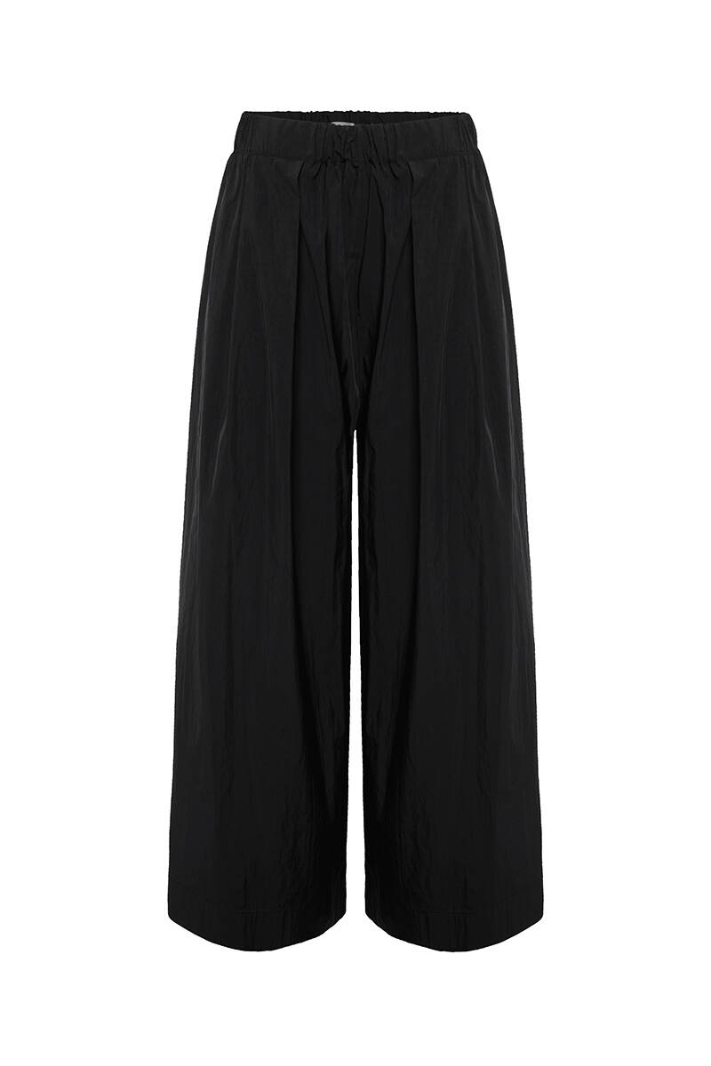 Siyah Beli Lastikli Paraşüt Kumaş Pantolon Etek