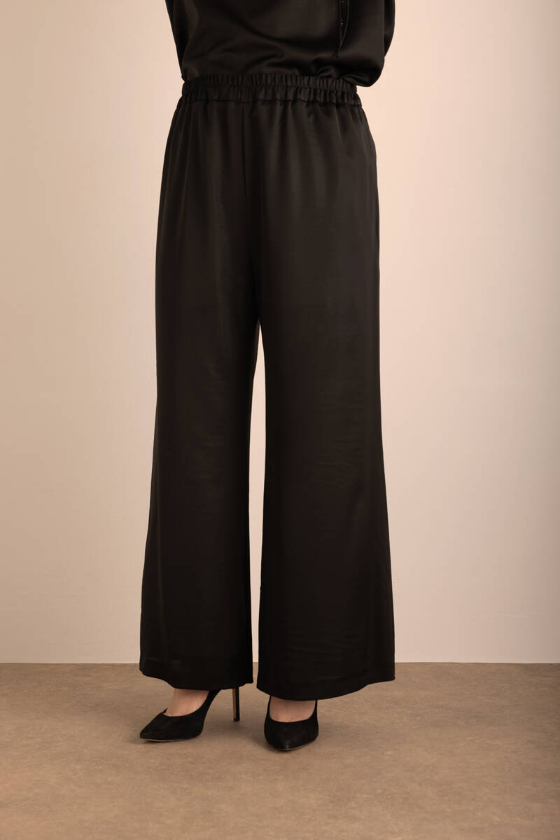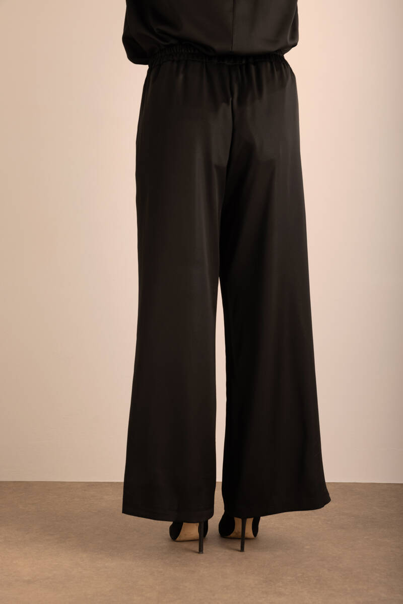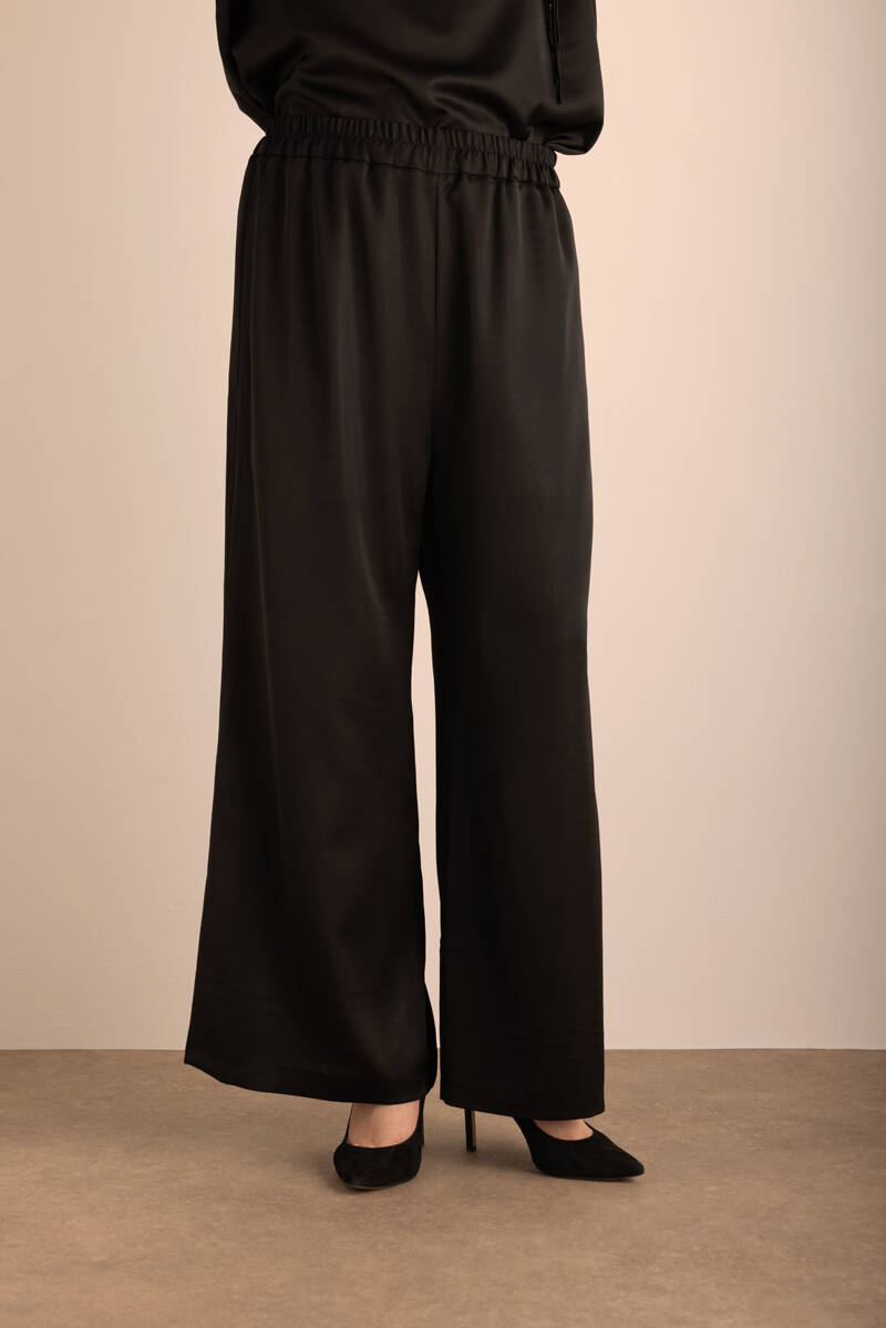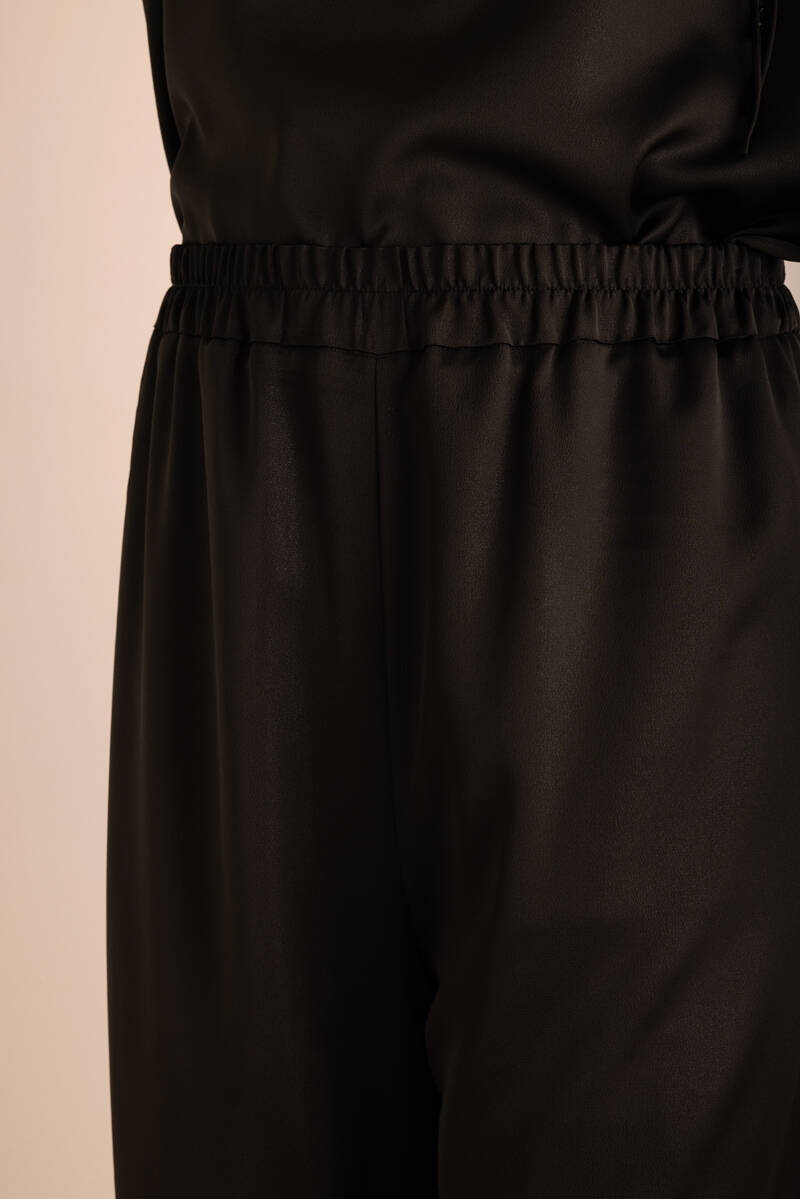 Siyah Beli Lastikli Keten Pantolon