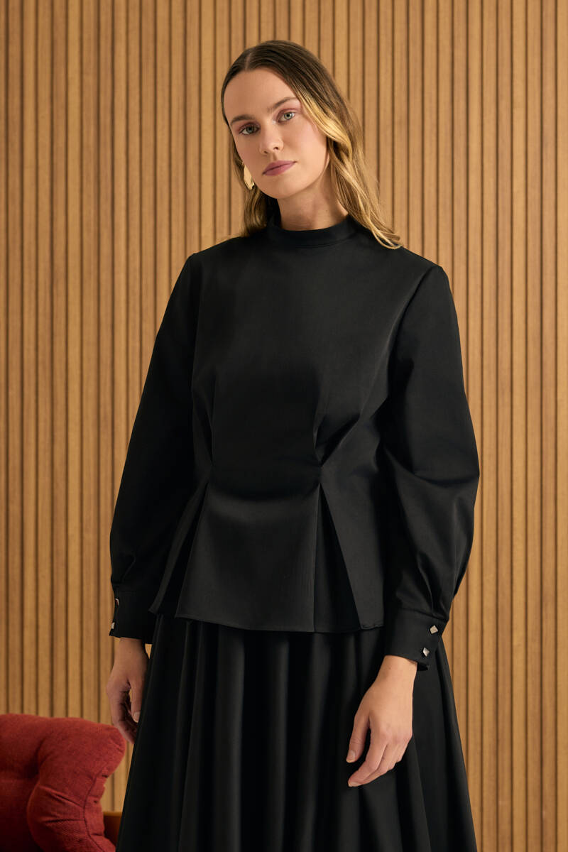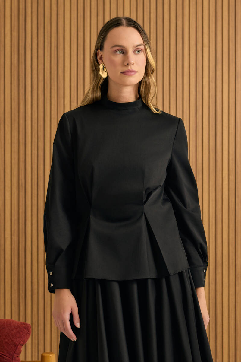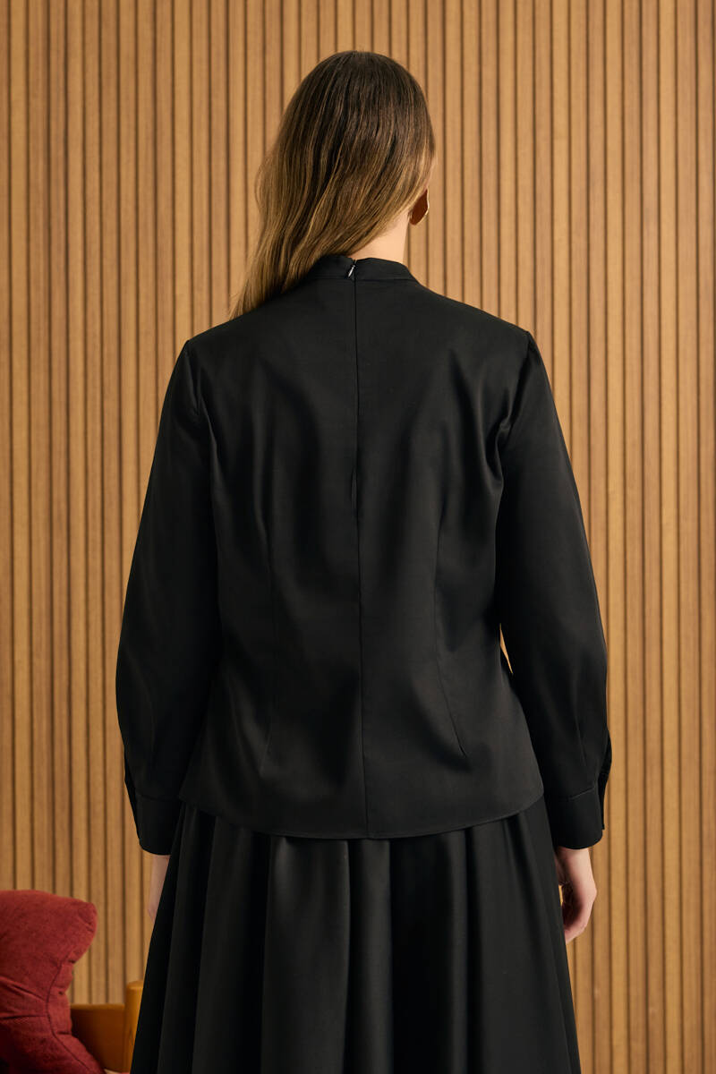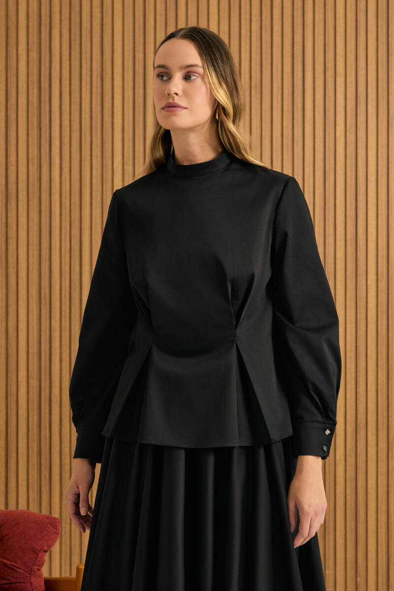Siyah Rahat Form Keten Bluz