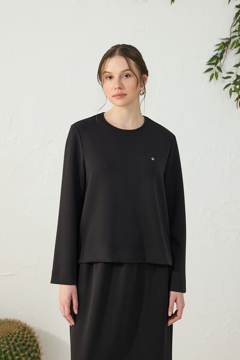 Saks Ön Göğüs Kısmı Pile ve Parça Detaylı Bluz