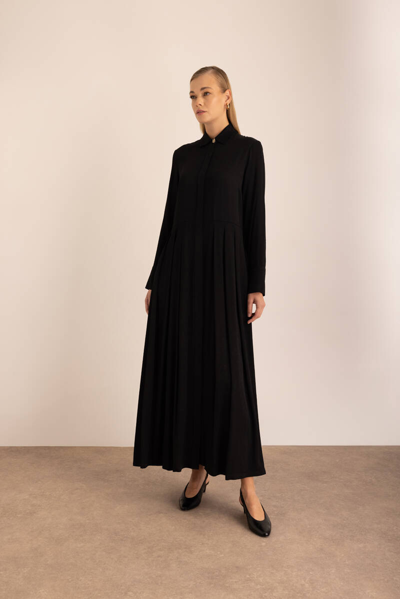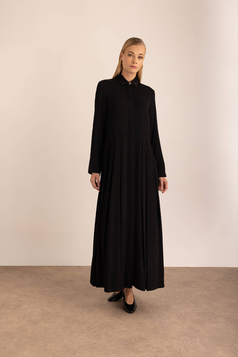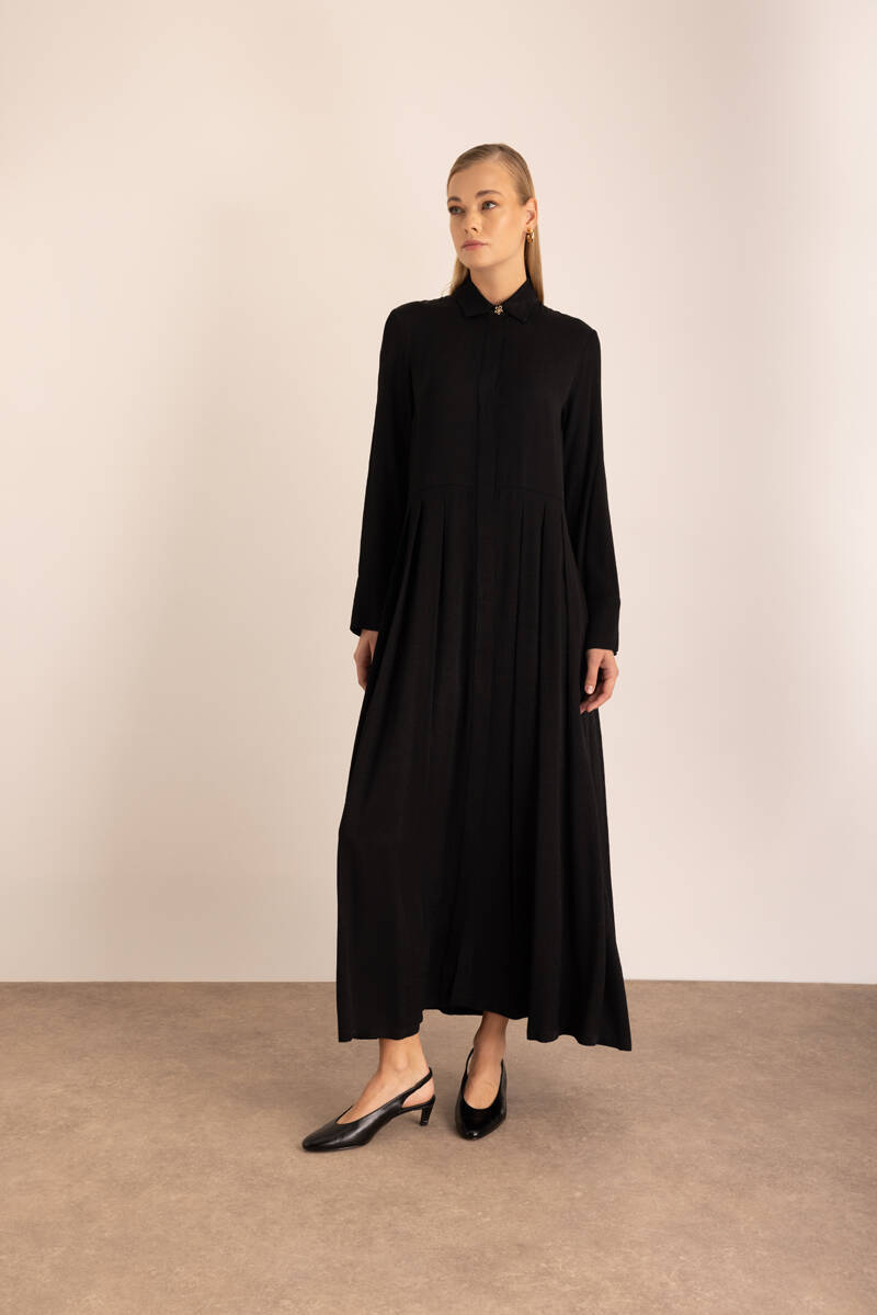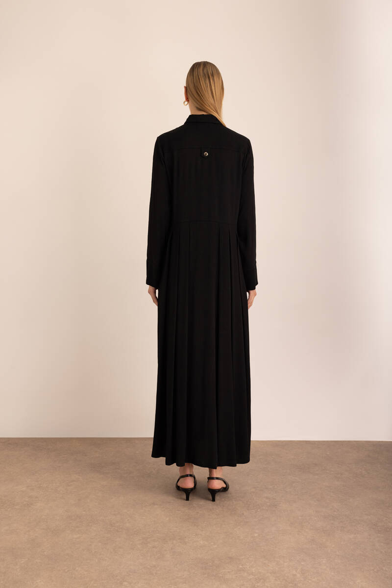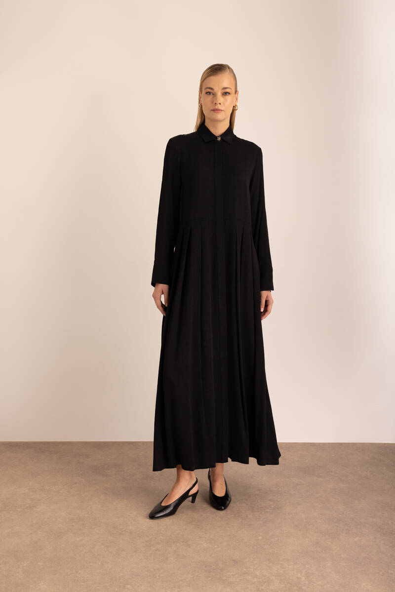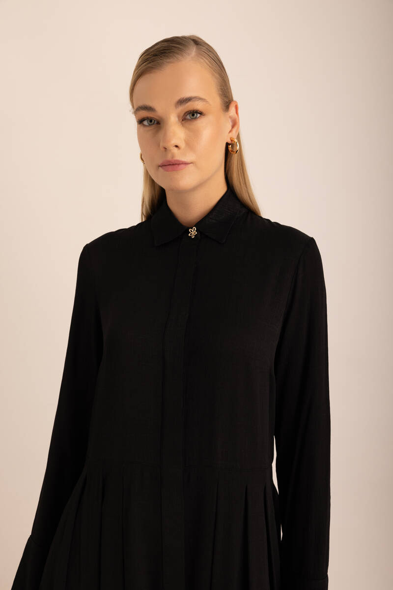 Siyah Doğal Dokulu Kumaş Gömlek Elbise