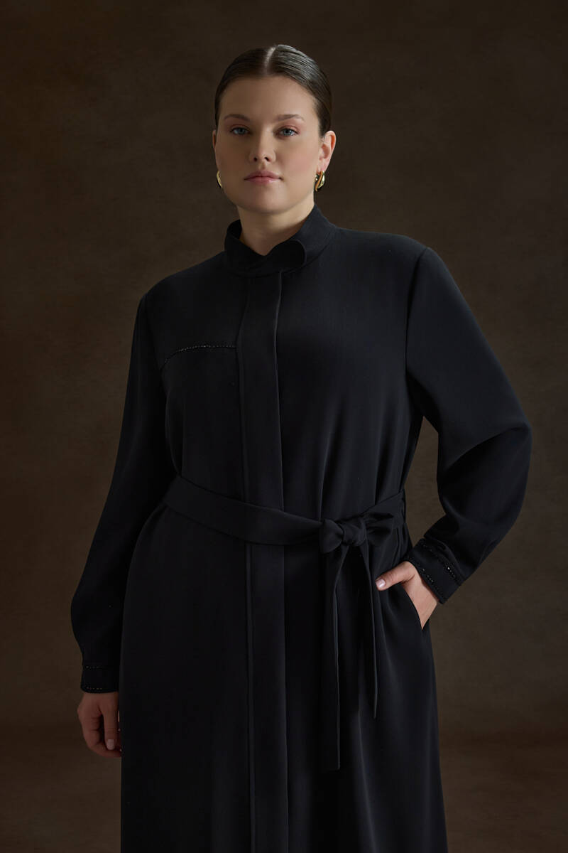Taş Fermuarlı Keten Ferace