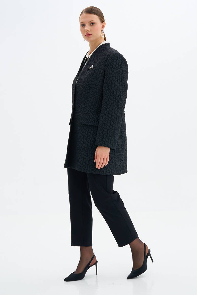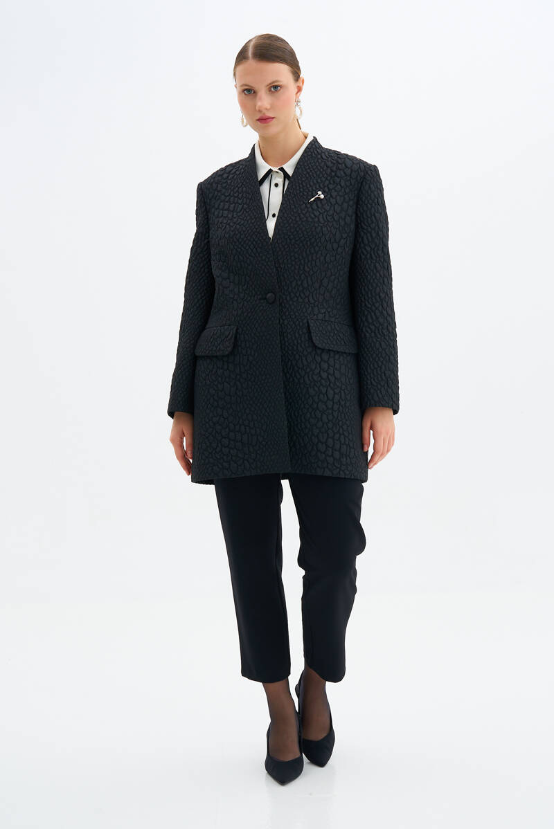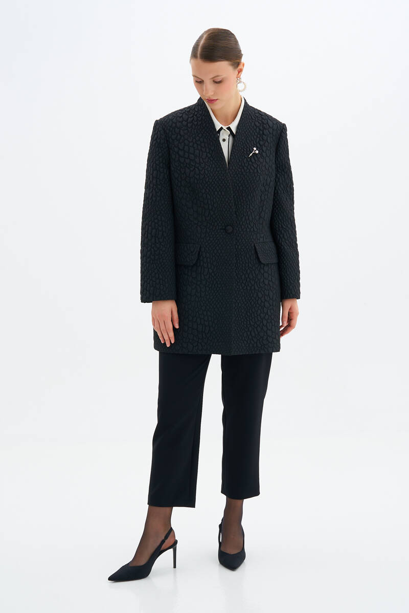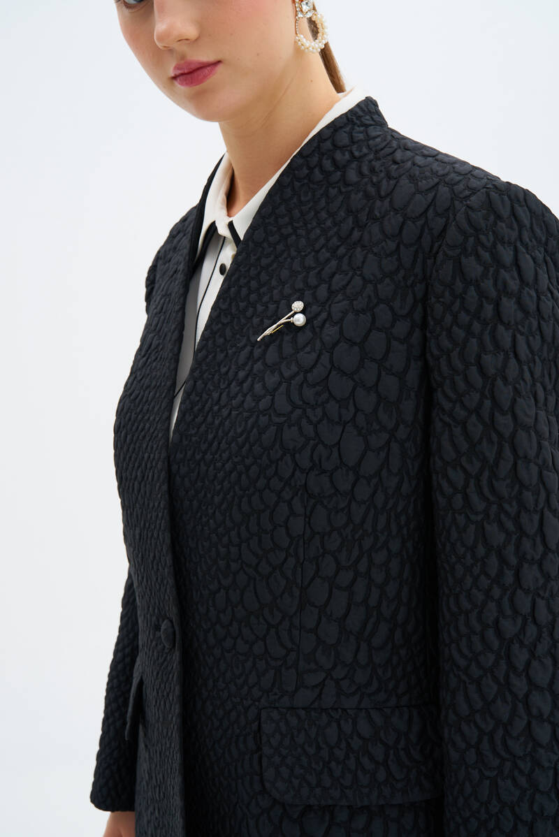 Siyah Broş Detaylı Ceket