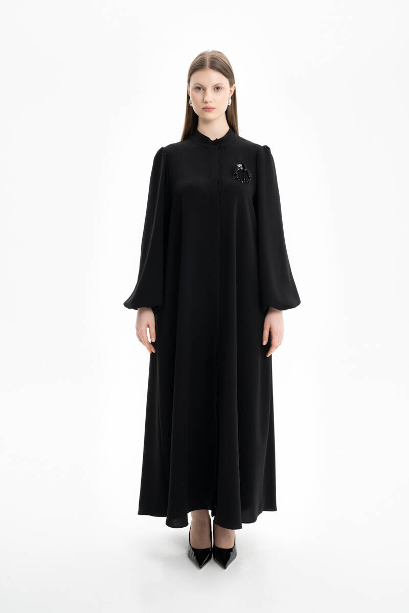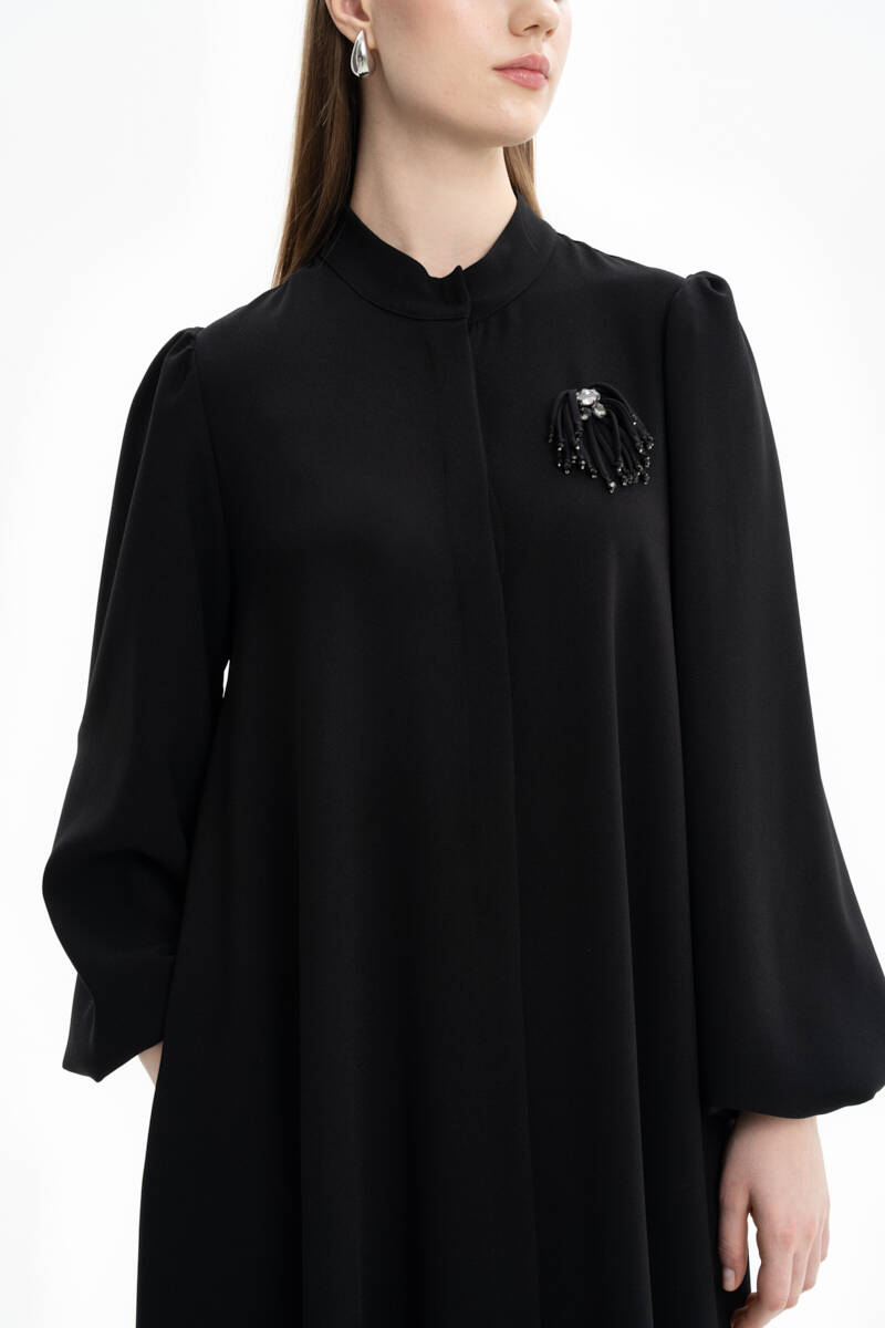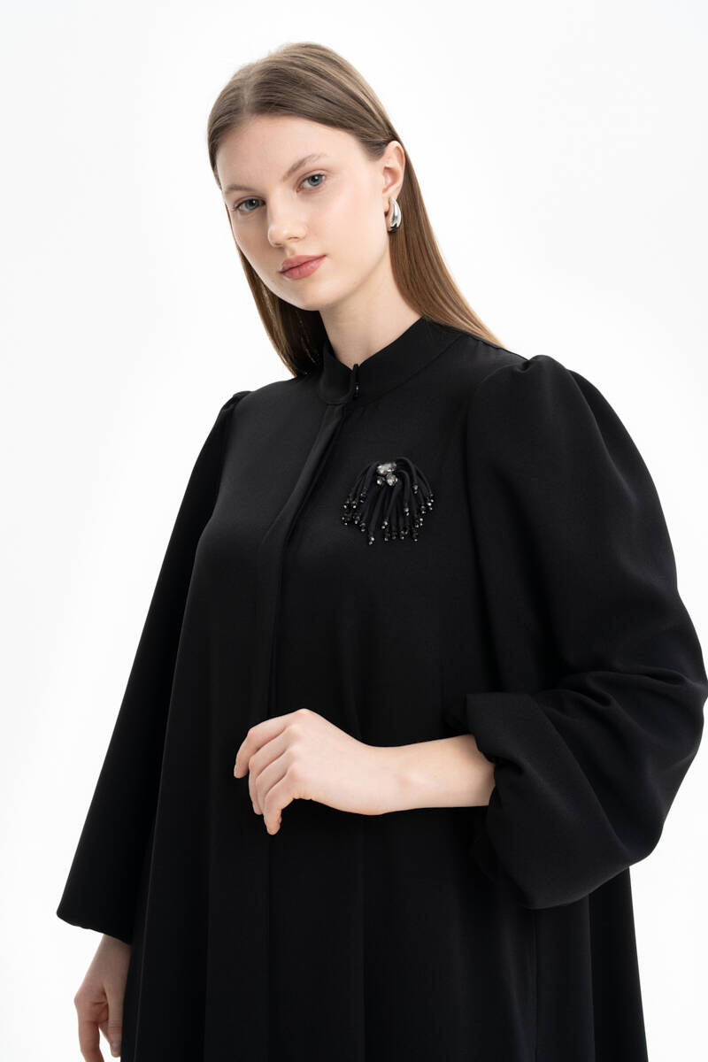 Siyah 7639111 Yaka İşlemeli Pardösü