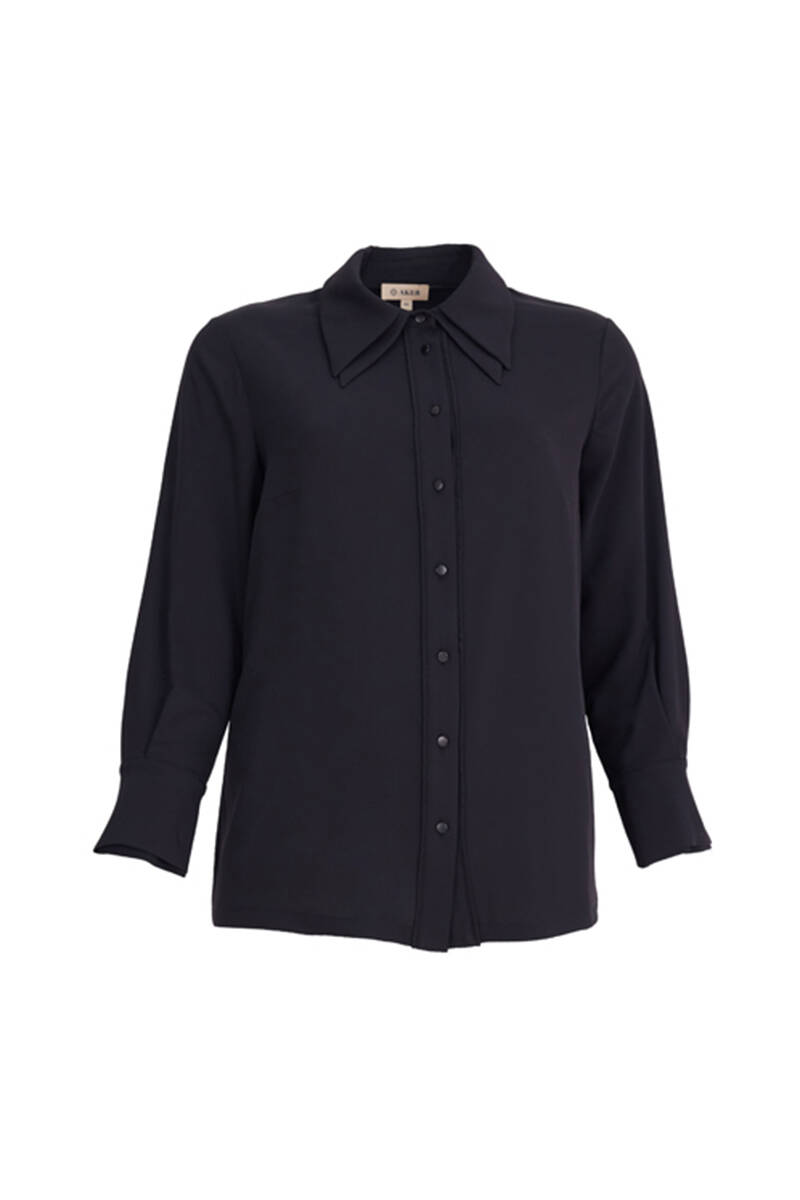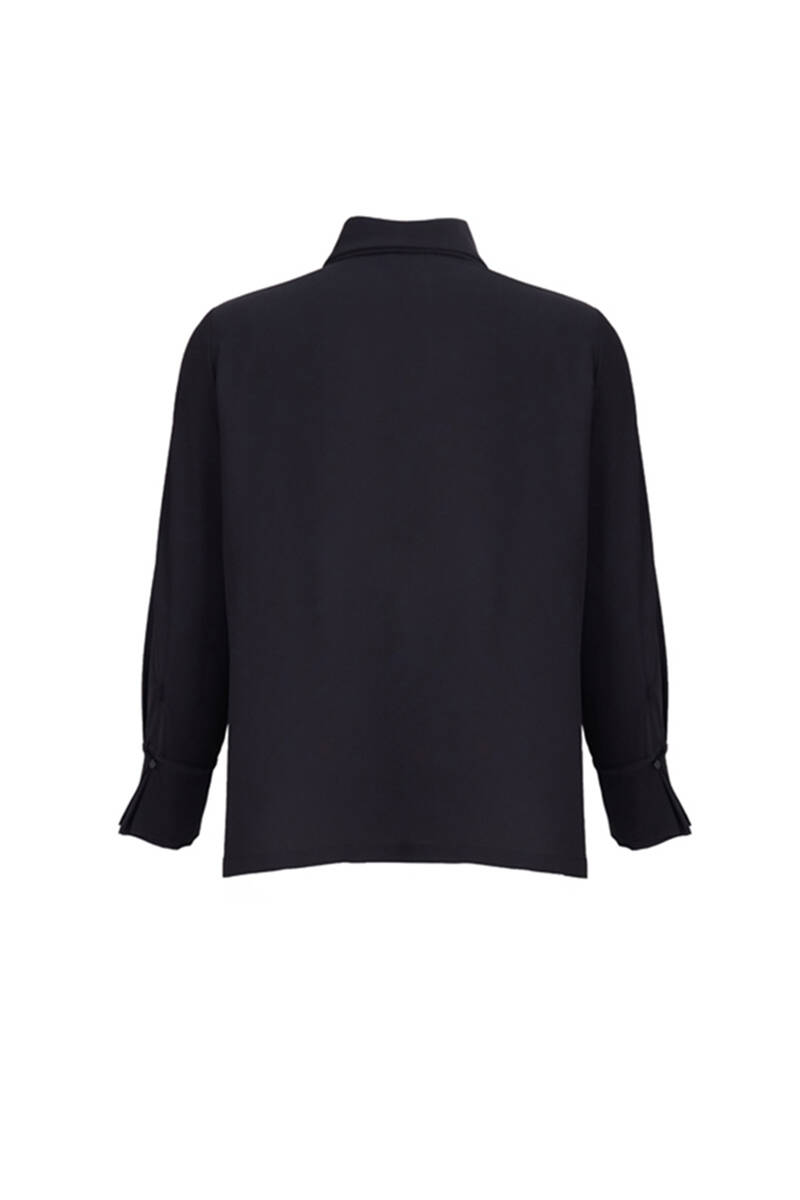 Antrasit Yaka İşlemeli Çizgili Bluz