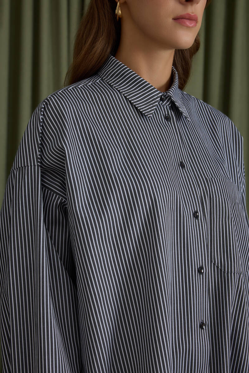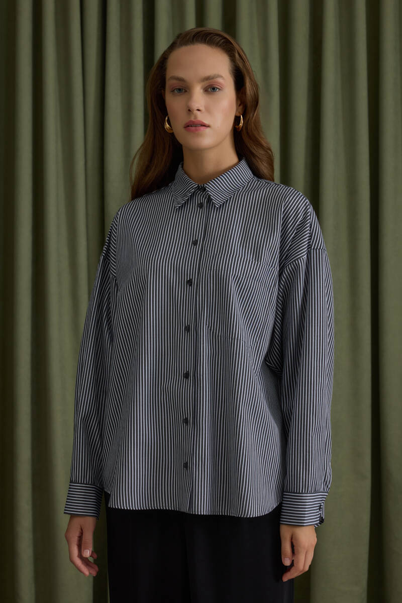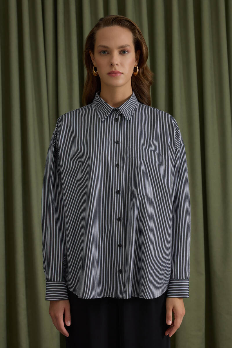 Siyah Rahat Form Cotton Gömlek